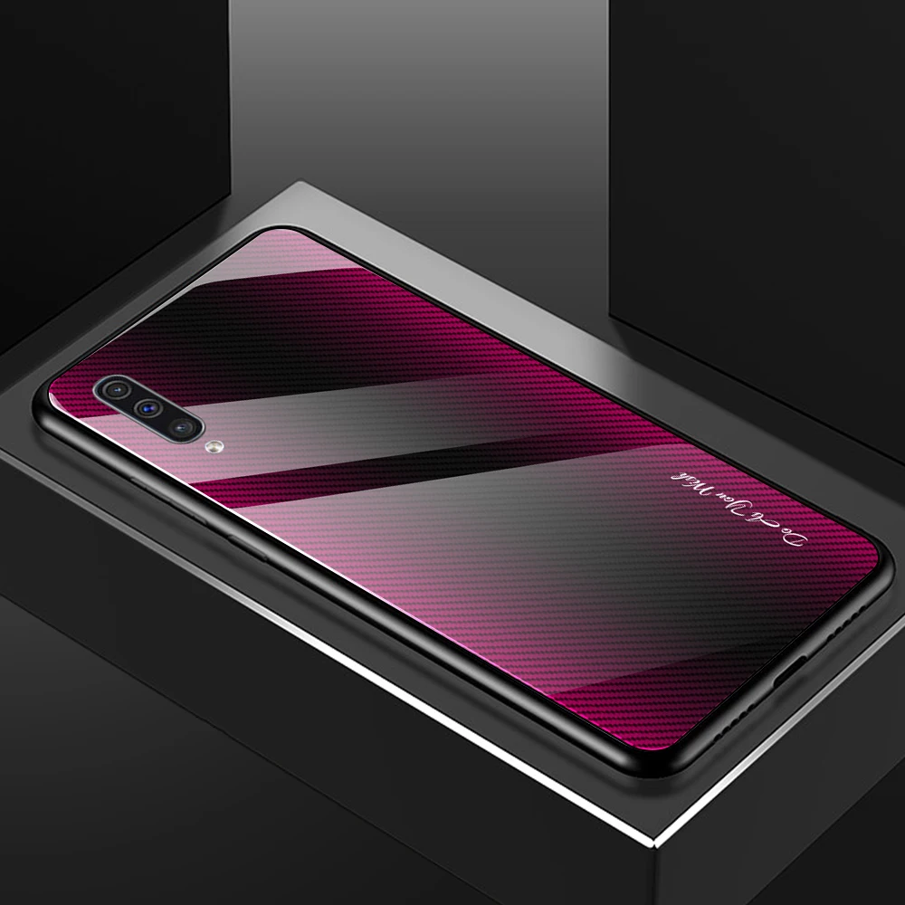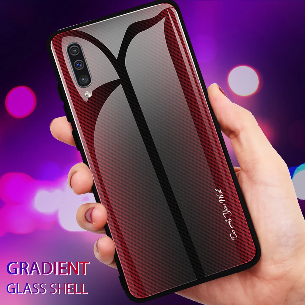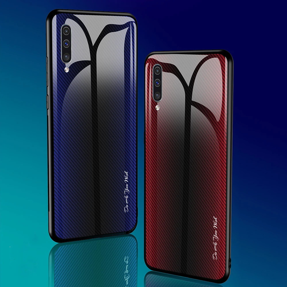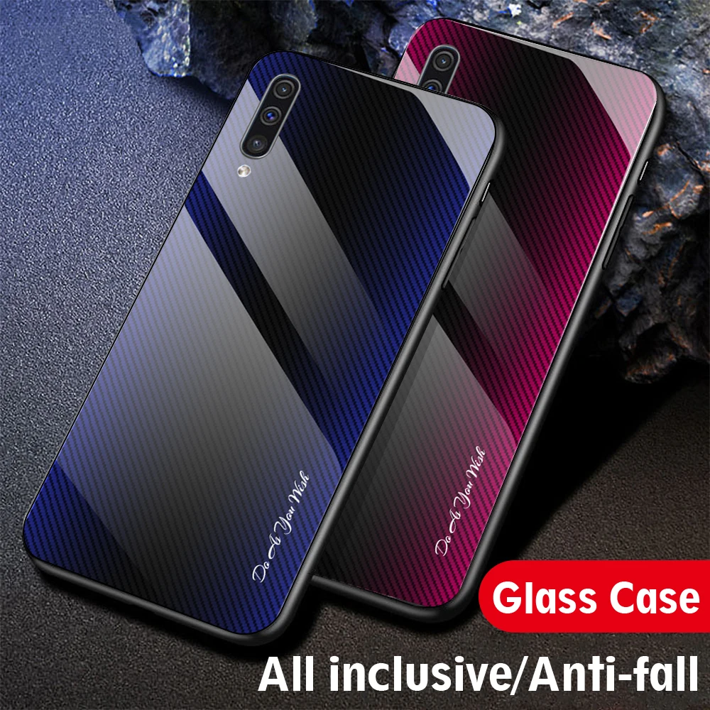 Para Samsung Galaxy A50 A70 A30 A20 funda dura de vidrio templado gradiente protege la funda trasera para samsung A10 A80 A90 A30s A50s