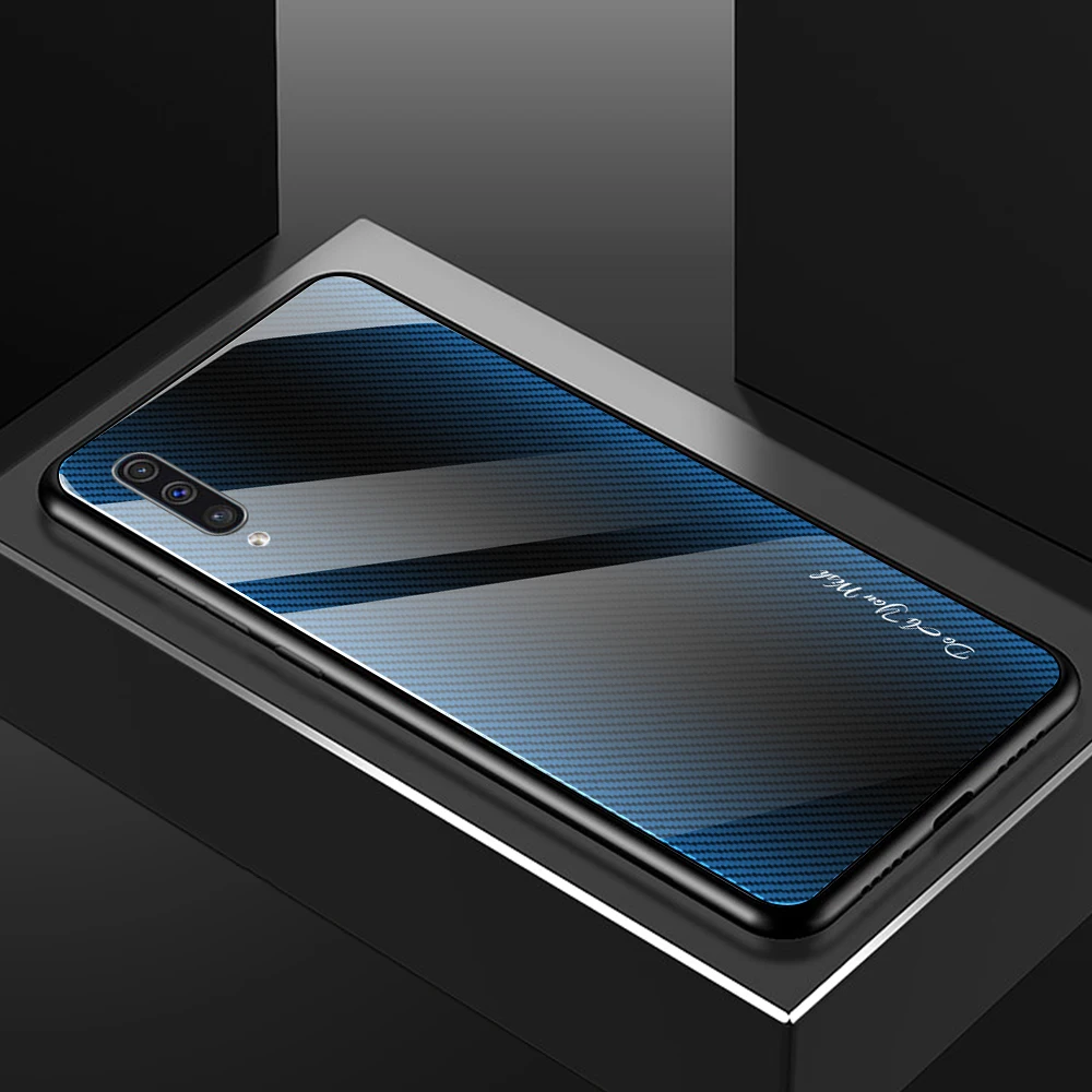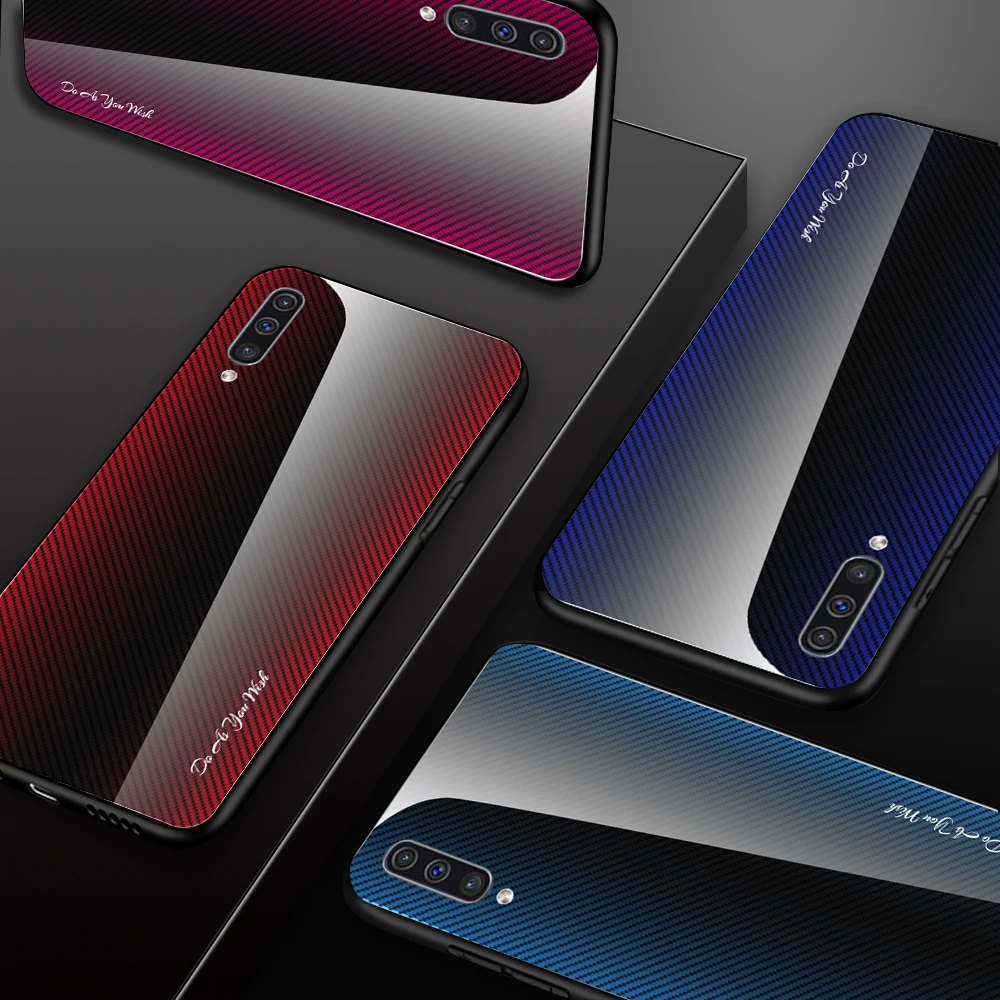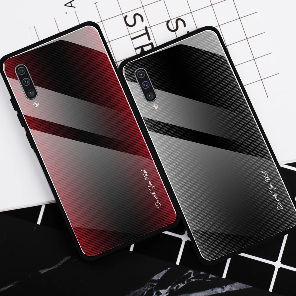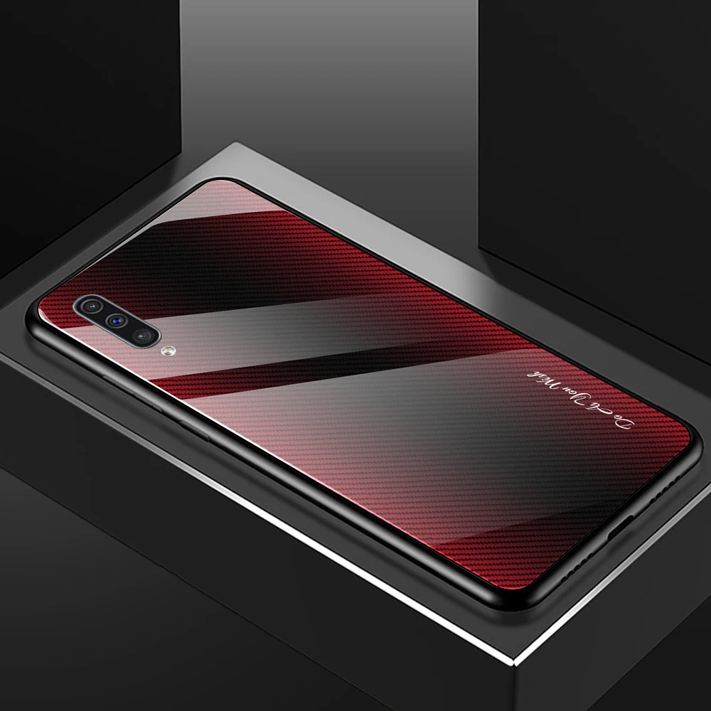 Para Samsung Galaxy A50 A70 A30 A20 funda dura de vidrio templado gradiente protege la funda trasera para samsung A10 A80 A90 A30s A50s