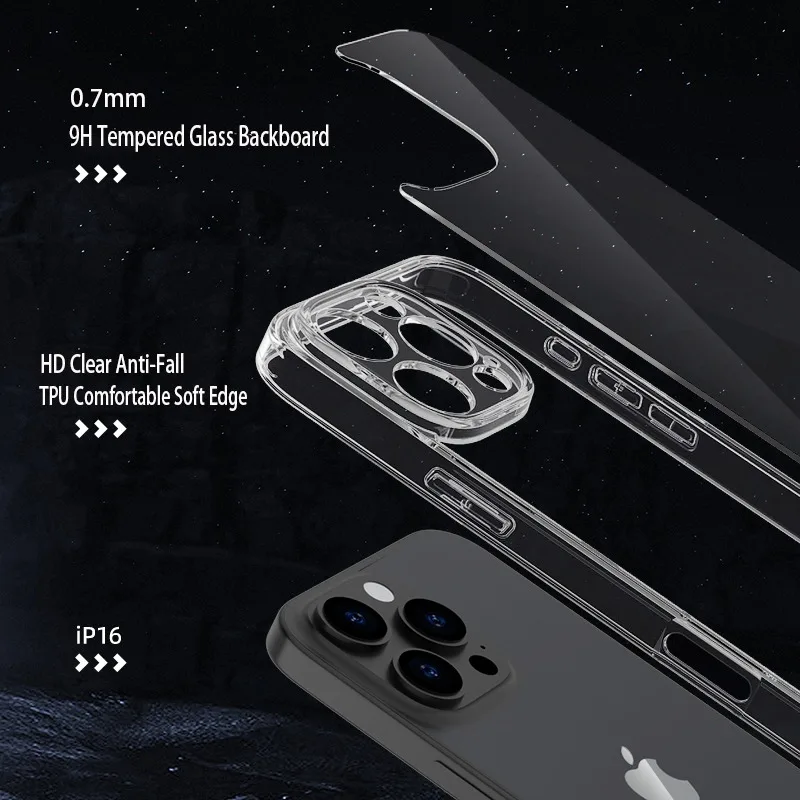 Comprar Funda de vidrio templado transparente de lujo para iPhone 16 15 14 12 13 11 Pro X XS Max XR 7 8 Plus SE cubierta trasera dura transparente a prueba de golpes