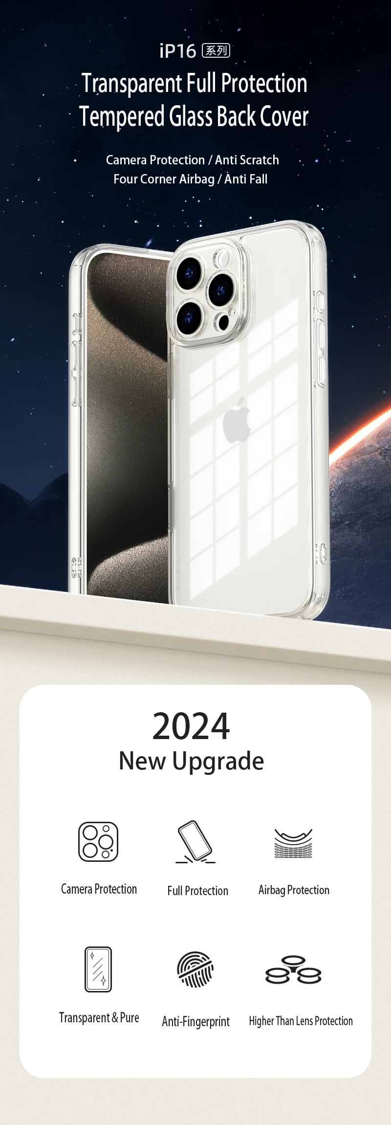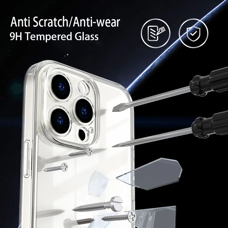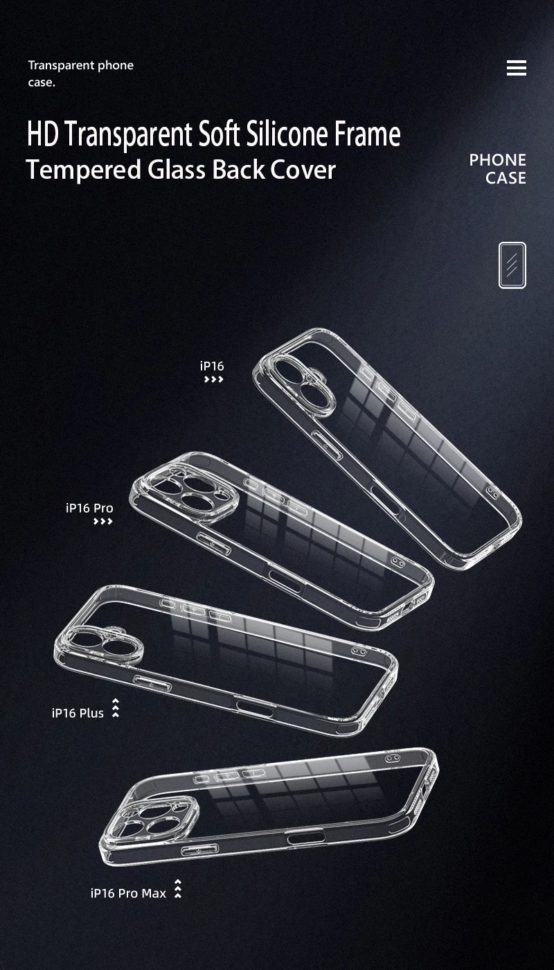 Funda de vidrio templado transparente de lujo para iPhone 16 15 14 Plus 12 13 Mini 11 Pro X XS Max XR 7 8 SE, cubierta dura transparente a prueba de golpes