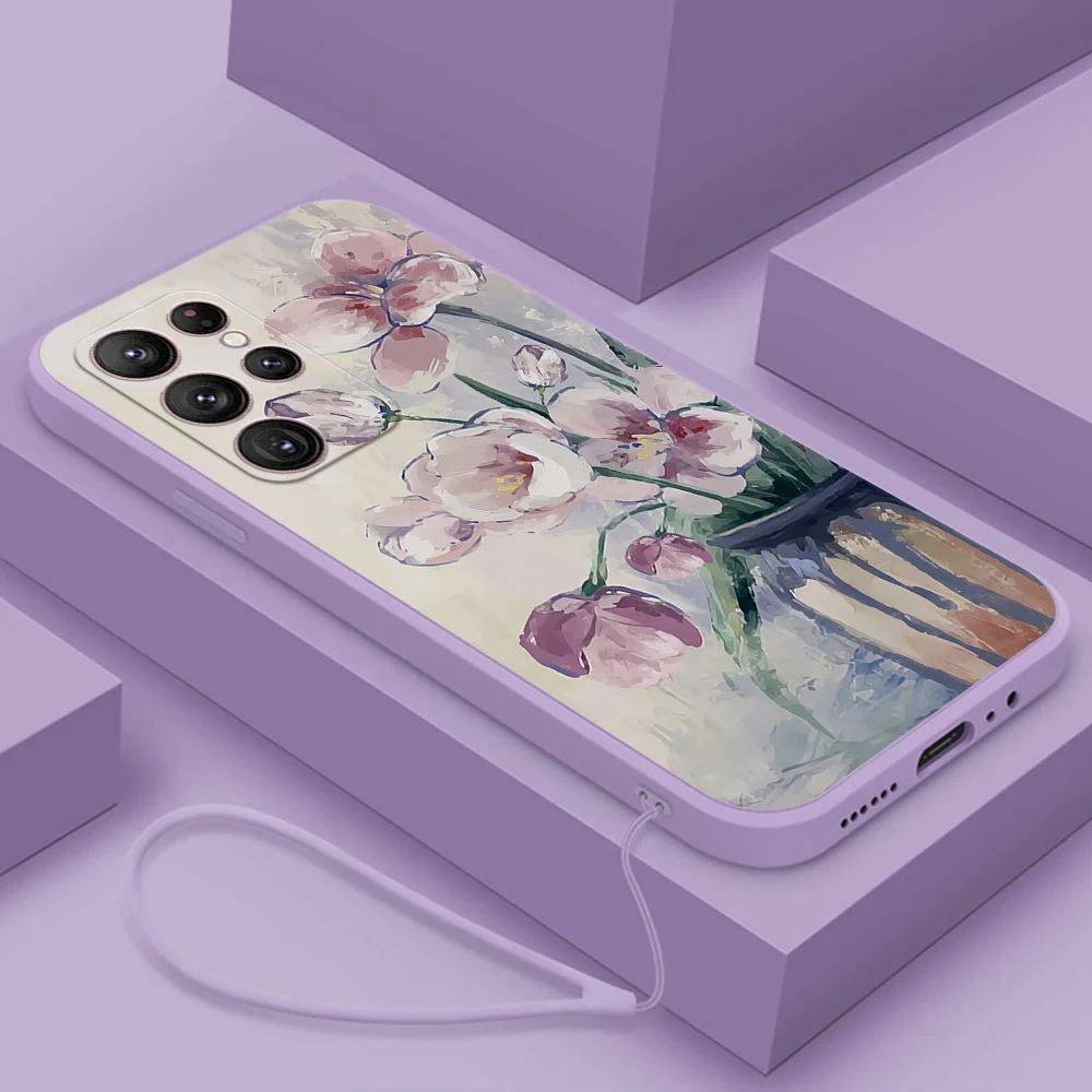Comprar Funda Vintage con pintura al óleo de flores para Samsung Galaxy S23 S24 Ultra S24 Plus S21 S22 Ultra S21 FE S20 FE S23 FE 5G, funda de silicona
