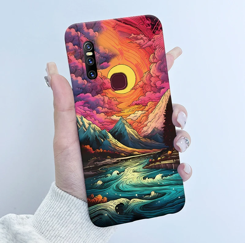 Comprar Funda para Vivo V15 1819 Funda de teléfono Popular flor mate a prueba de golpes Funda trasera de silicona suave para Vivo V15 V 15 Pro 1818 Funda Capa