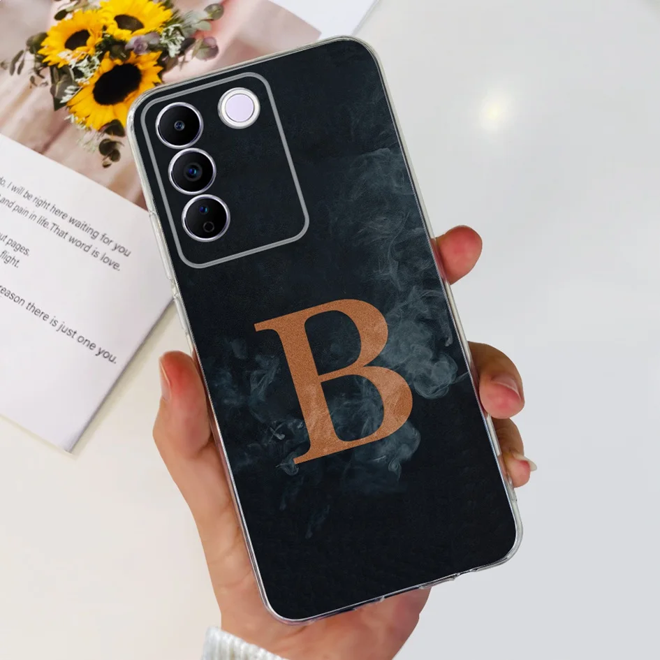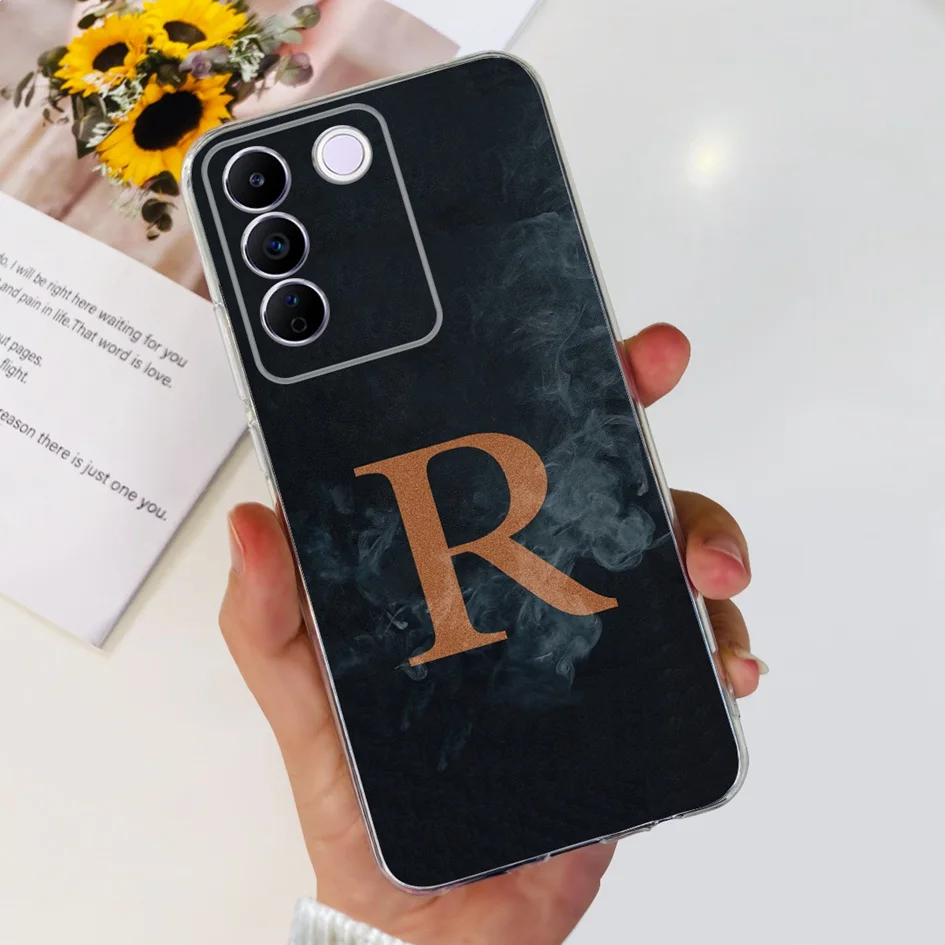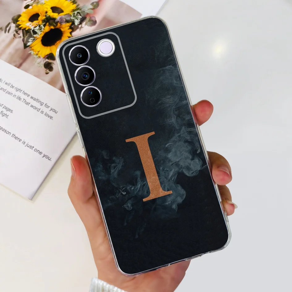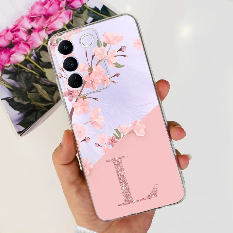 Comprar Funda para Vivo V27e V2237, carcasa elegante con letras florales, delgada, de silicona suave, transparente, a prueba de golpes, V25, V25e, V27e, V 25