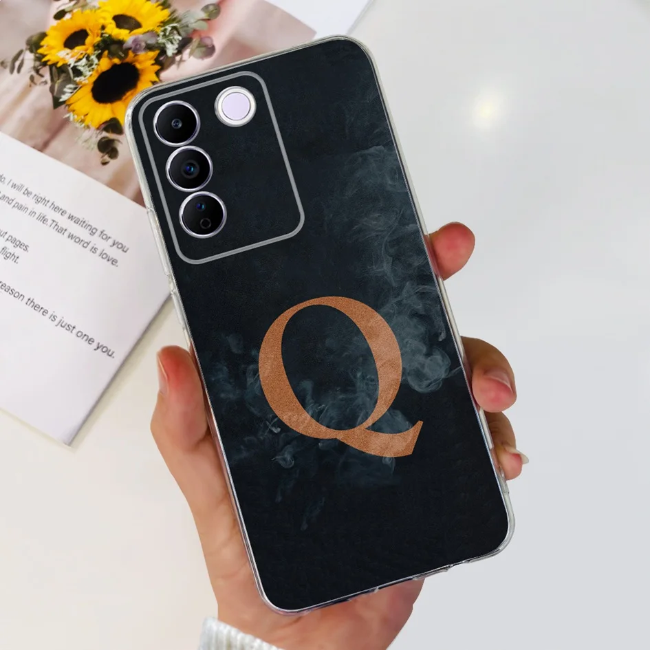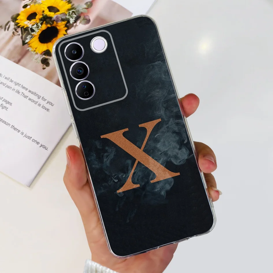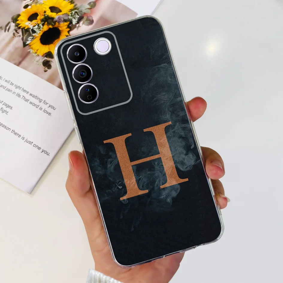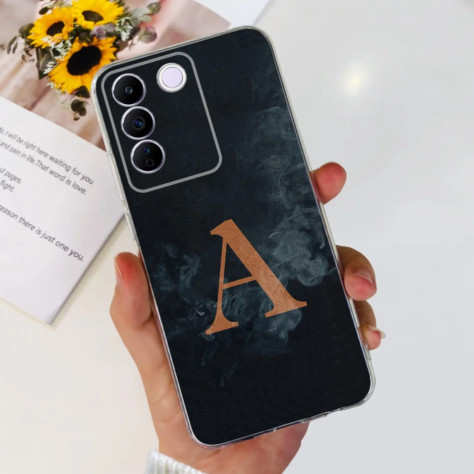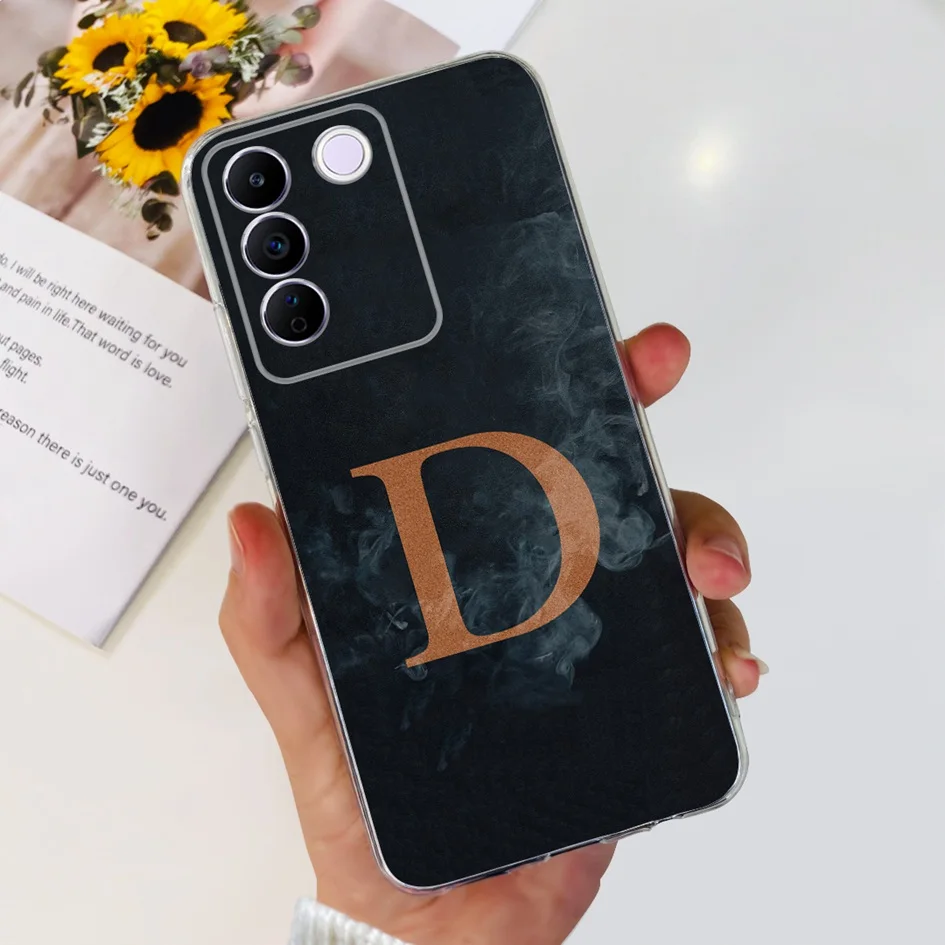 Comprar Funda para Vivo V27e V2237, carcasa elegante con letras florales, delgada, de silicona suave, transparente, a prueba de golpes, V25, V25e, V27e, V 25