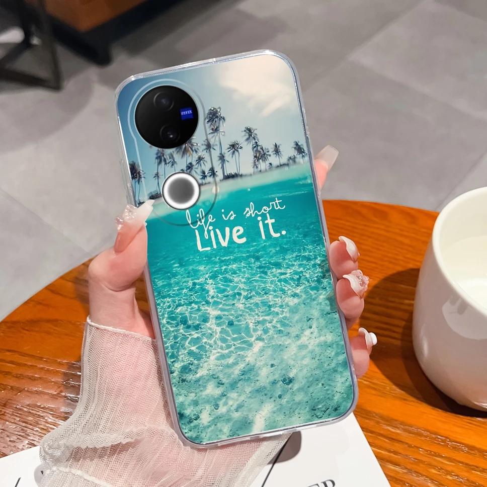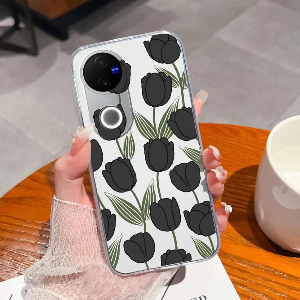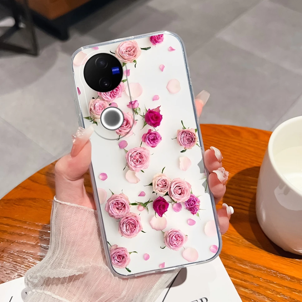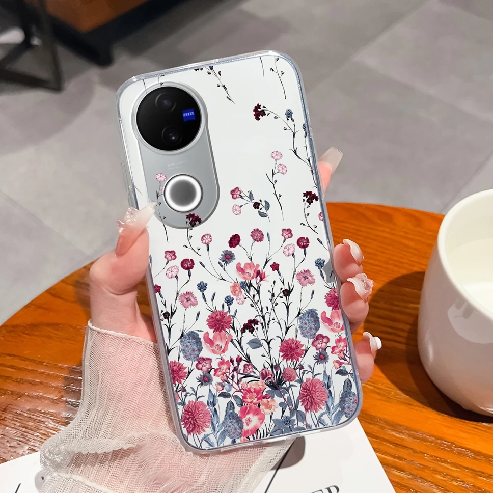 Comprar Funda para Vivo V50 Lite transparente Linda flor de alta calidad Funda protectora trasera de silicona suave para Vivo V 50 Lite 5G Funda Capa