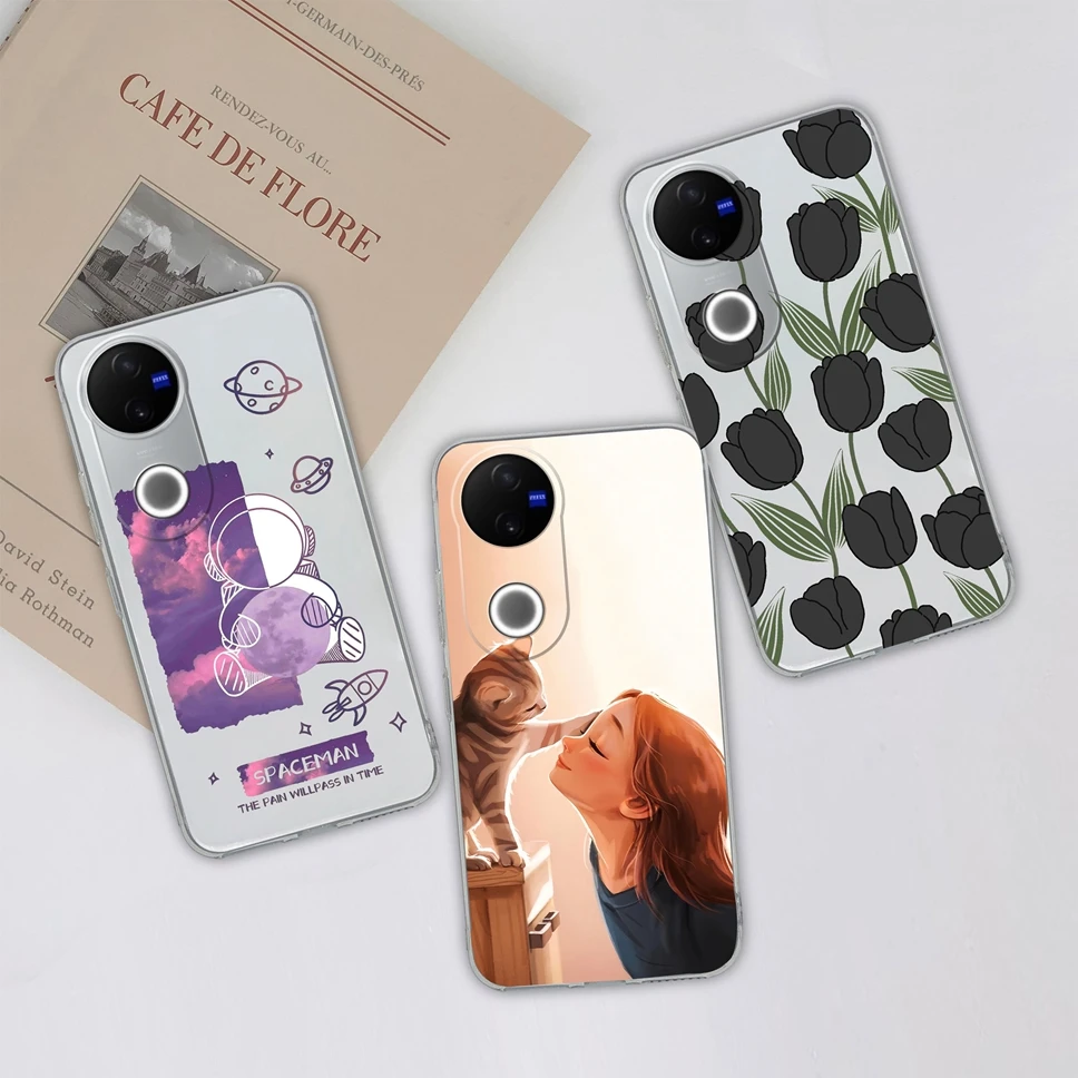 Comprar Funda para Vivo V50 Lite transparente Linda flor de alta calidad Funda protectora trasera de silicona suave para Vivo V 50 Lite 5G Funda Capa
