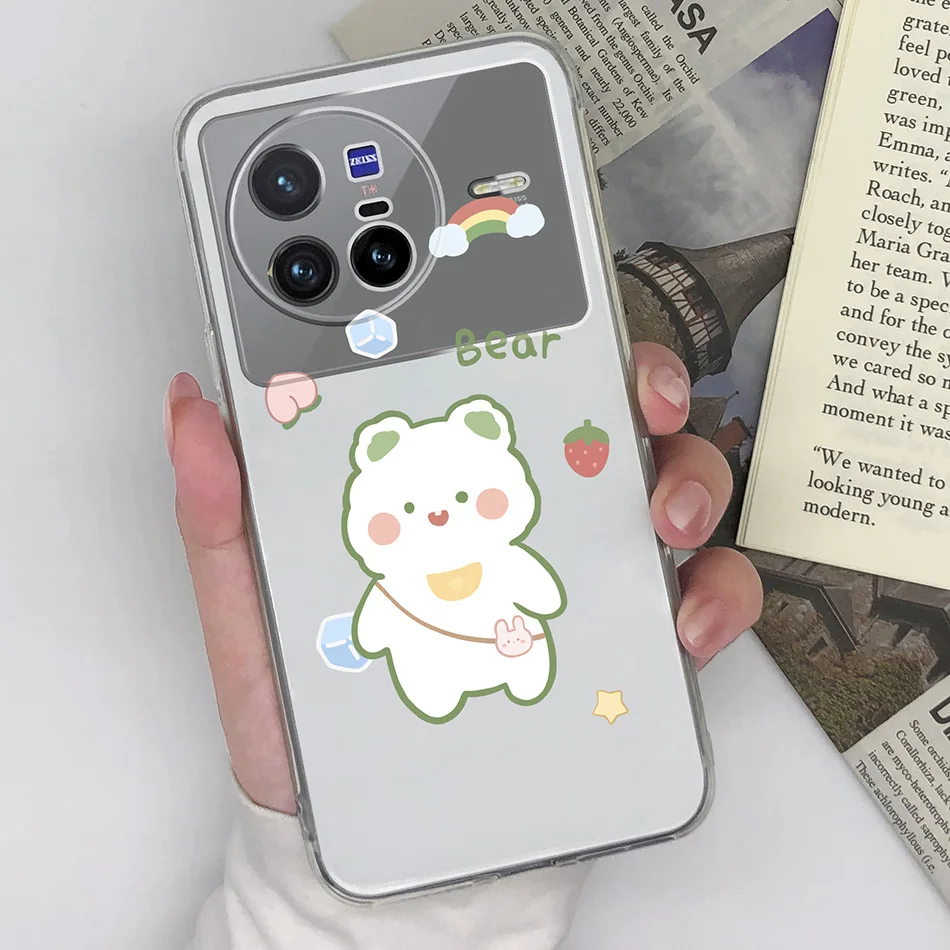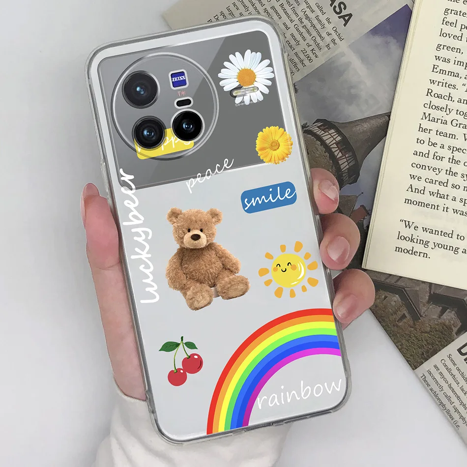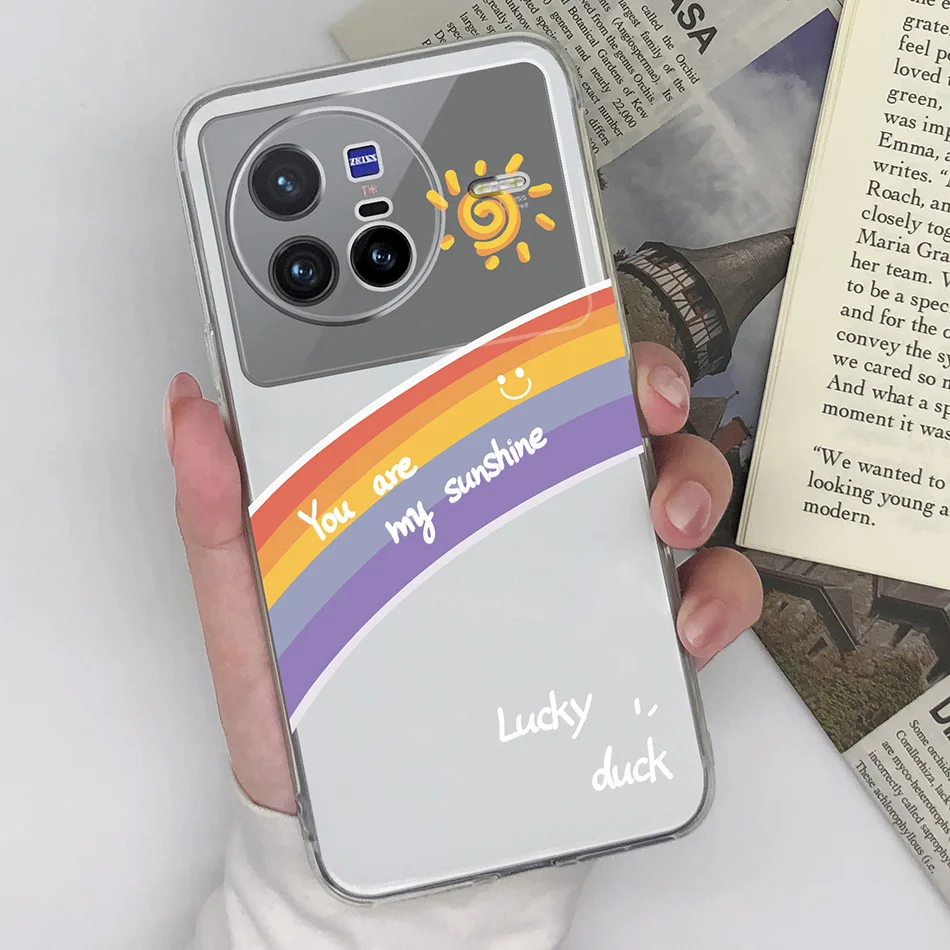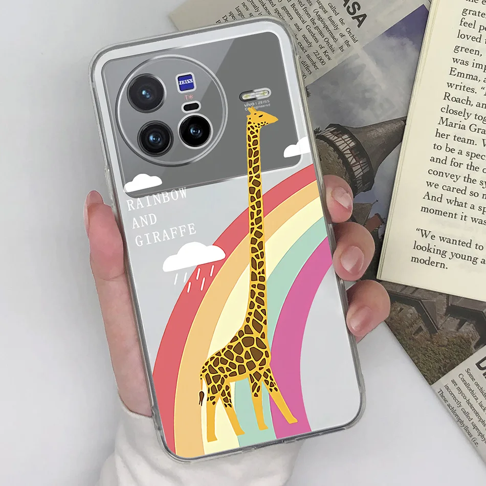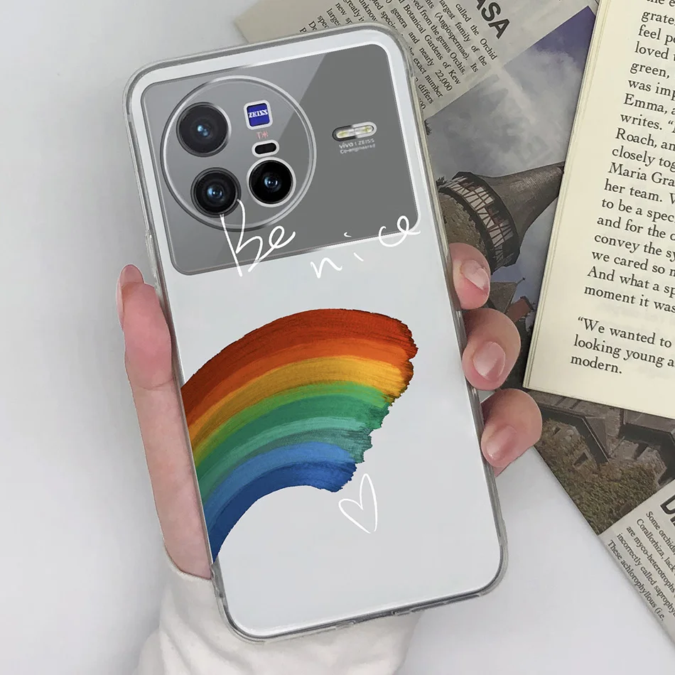 Funda para Vivo X80 Pro Rainbow Rabbit transparente suave delgada de silicona anticaída funda protectora trasera para teléfono Funda Capa Coque Shell
