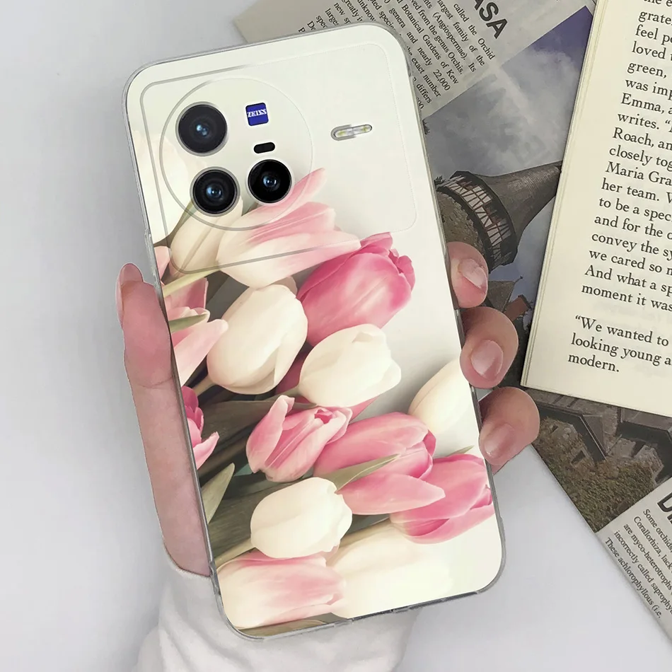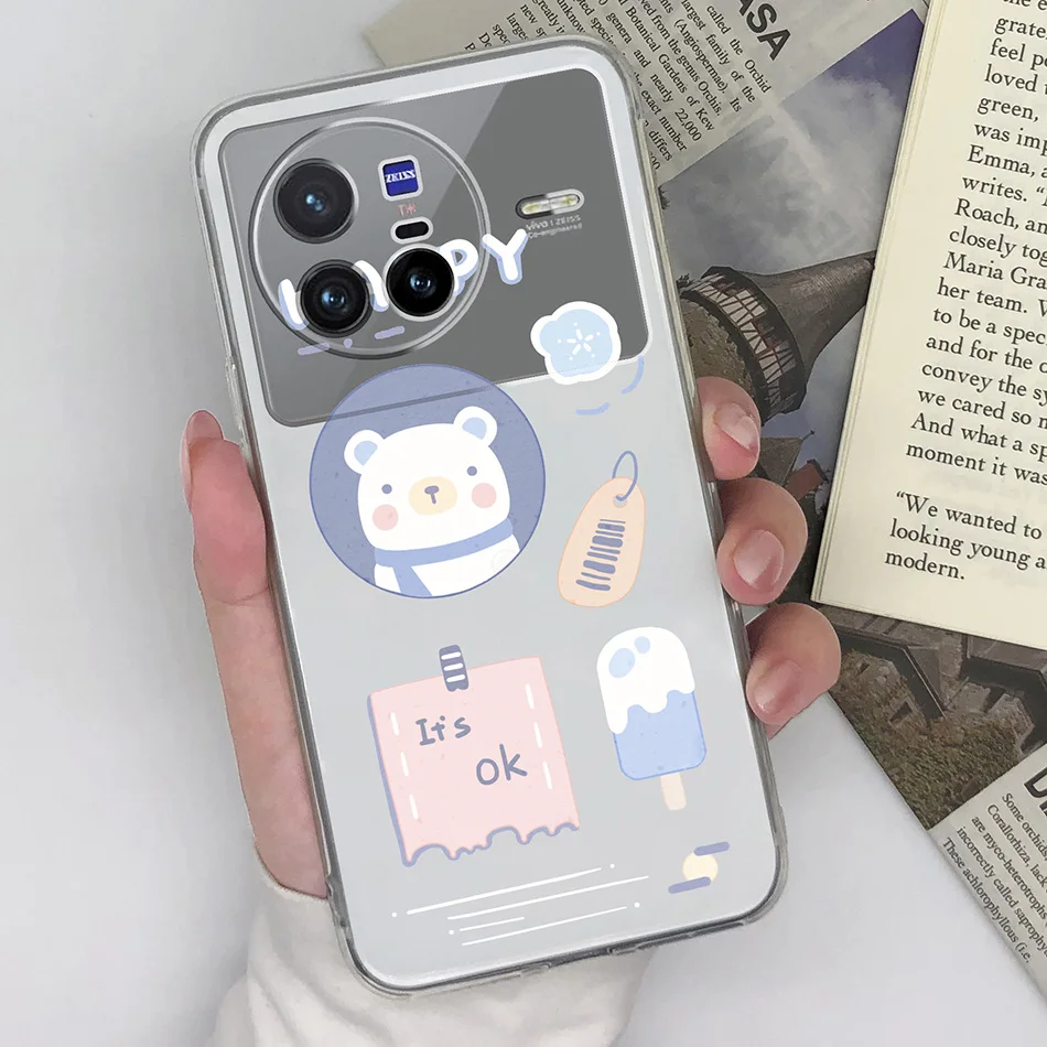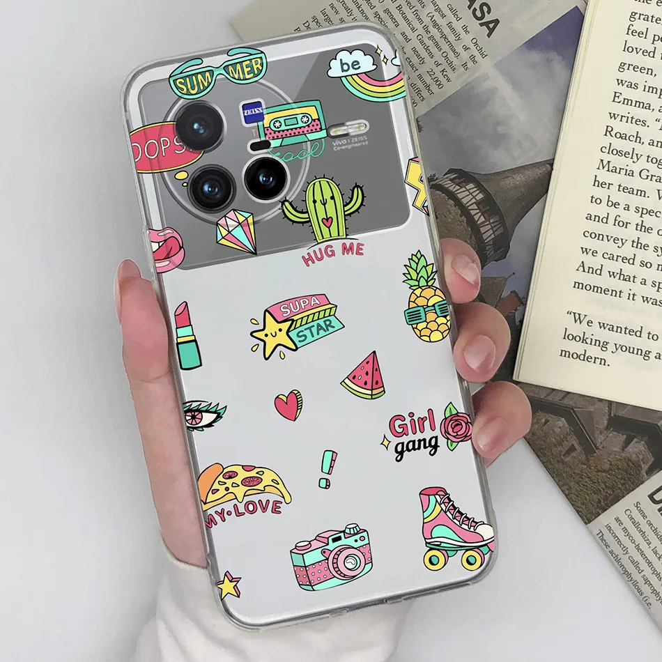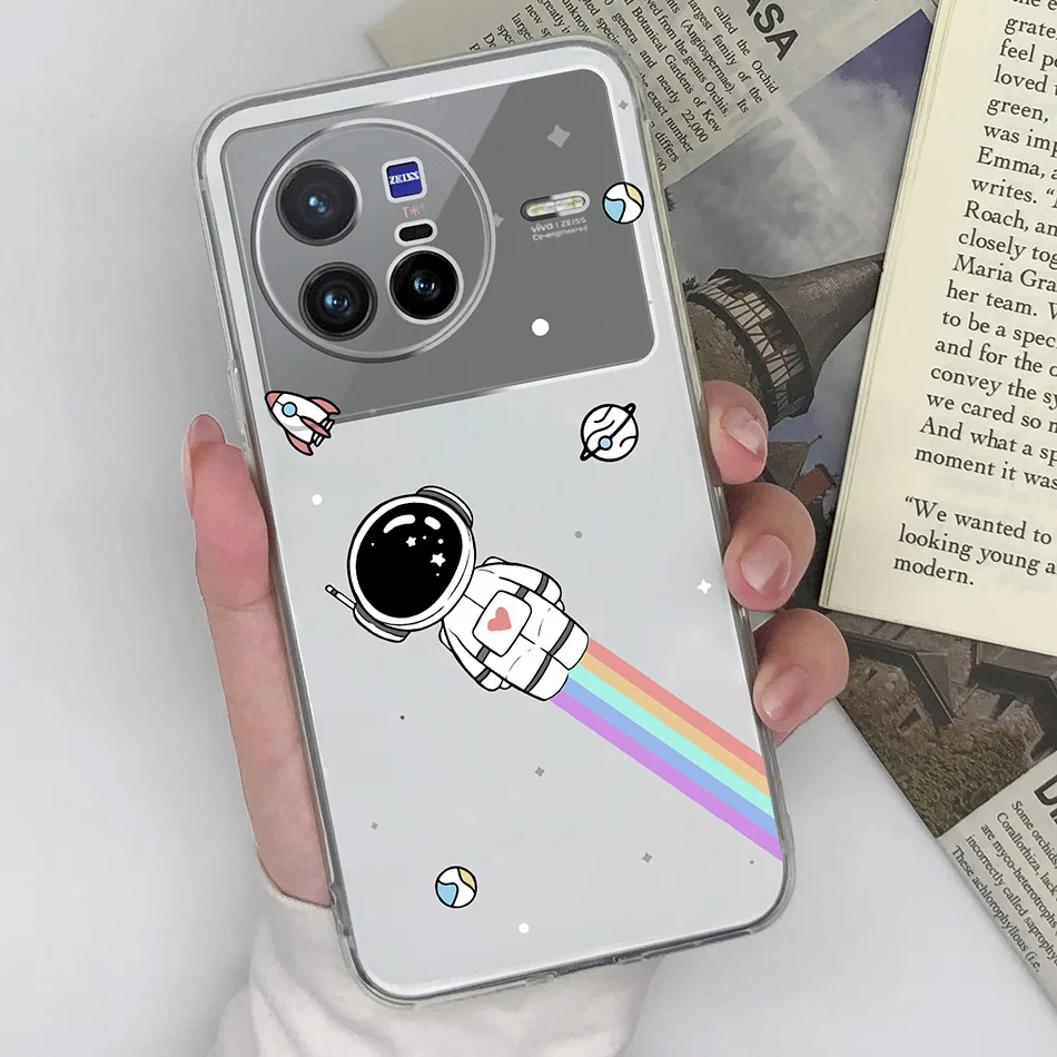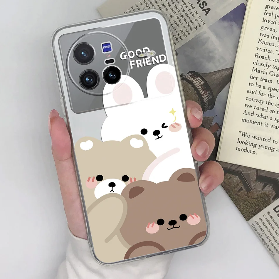 Funda para Vivo X80 Pro Rainbow Rabbit transparente suave delgada de silicona anticaída funda protectora trasera para teléfono Funda Capa Coque Shell