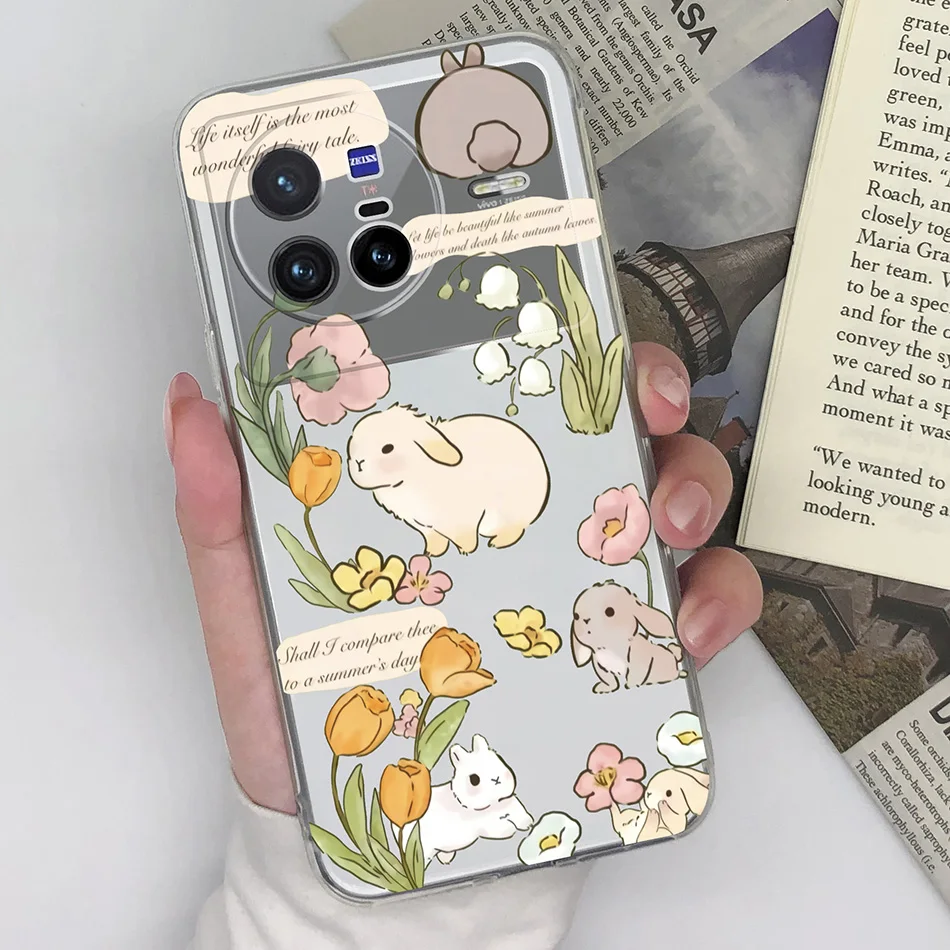 Comprar Funda para Vivo X80 Pro Rainbow Rabbit, transparente, suave, delgada, de silicona, anticaída, protectora, Funda trasera para teléfono