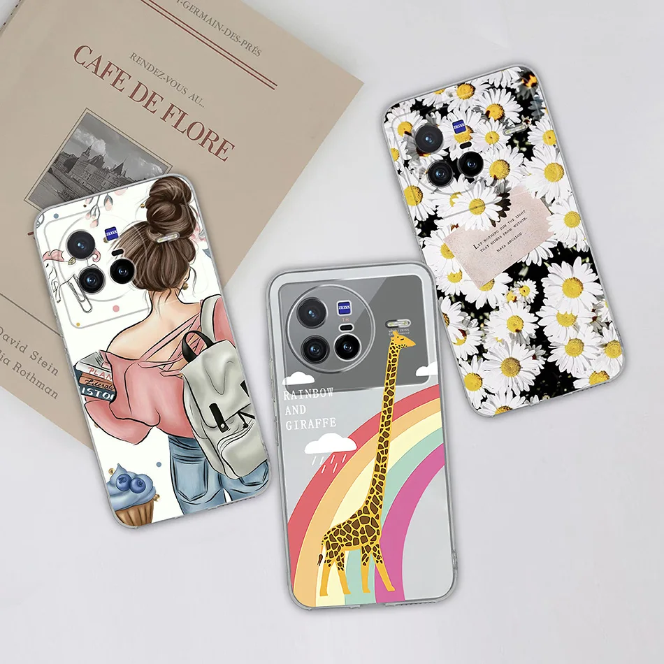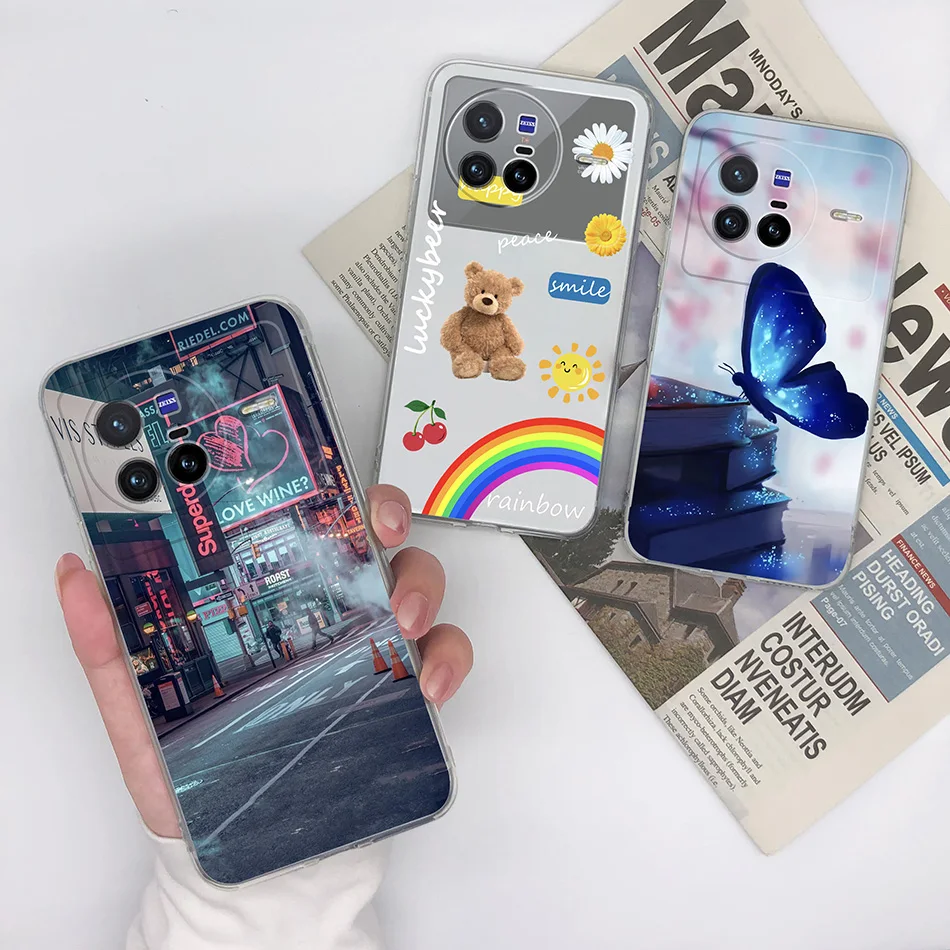 Funda para Vivo X80 Pro Rainbow Rabbit transparente suave delgada de silicona anticaída funda protectora trasera para teléfono Funda Capa Coque Shell