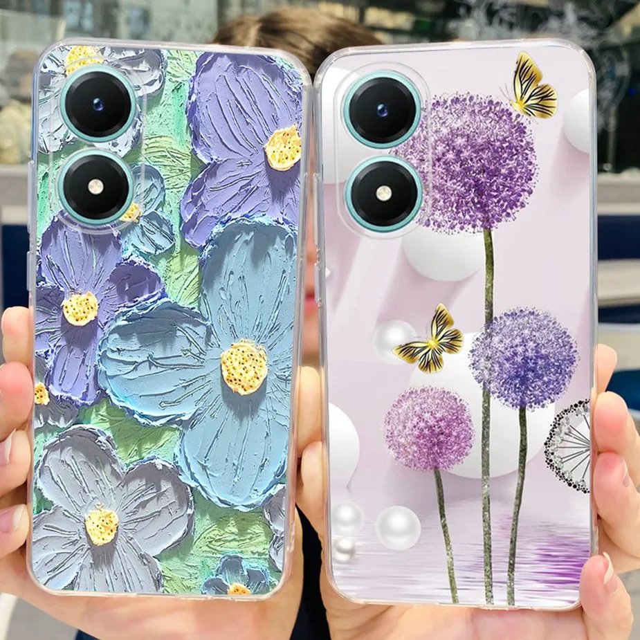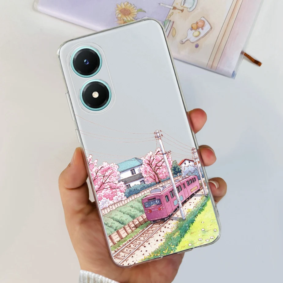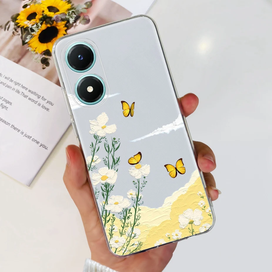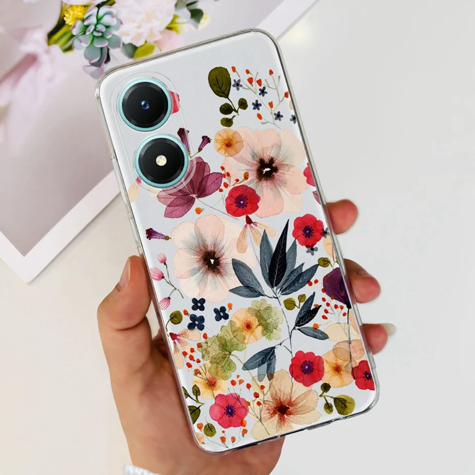 Comprar Funda para Vivo Y02s V2203, carcasa de silicona transparente, suave, pintada con flores de colores, para Vivo Y02s Y 02 s VivoY02s