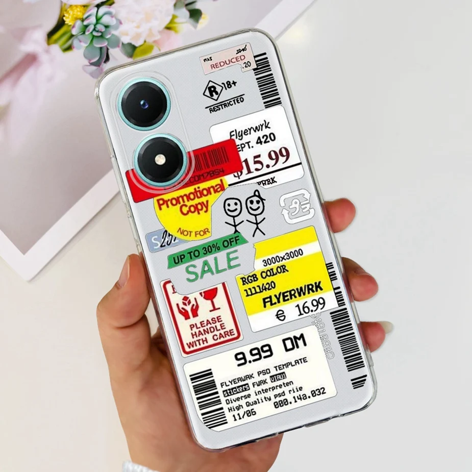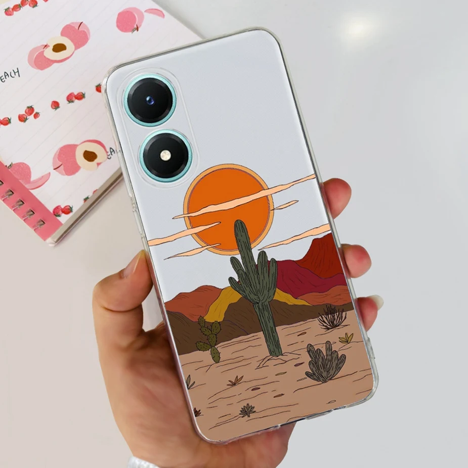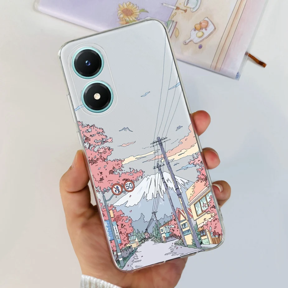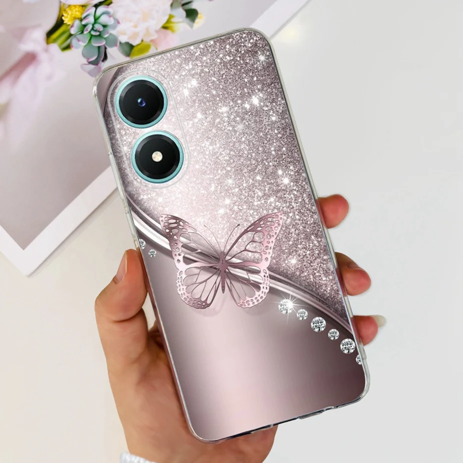 Comprar Funda para Vivo Y02s V2203, carcasa de silicona transparente, suave, pintada con flores de colores, para Vivo Y02s Y 02 s VivoY02s