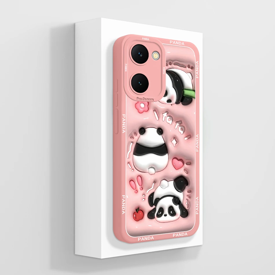 Comprar Funda para Vivo Y03 4G Fun Panda cobertura completa Funda de silicona líquida suave para Vivo Y 03 modelo V2332 Fundas traseras para teléfono Coque