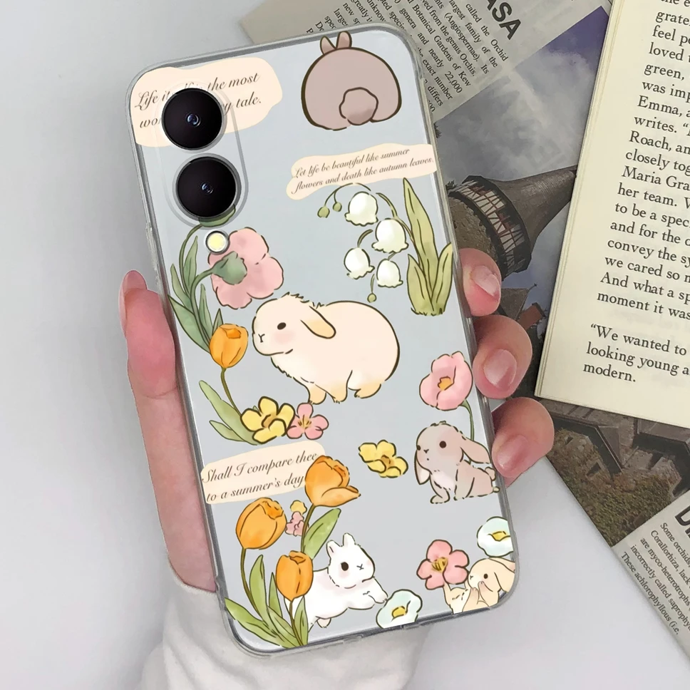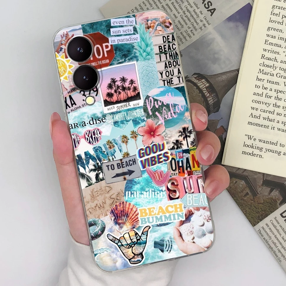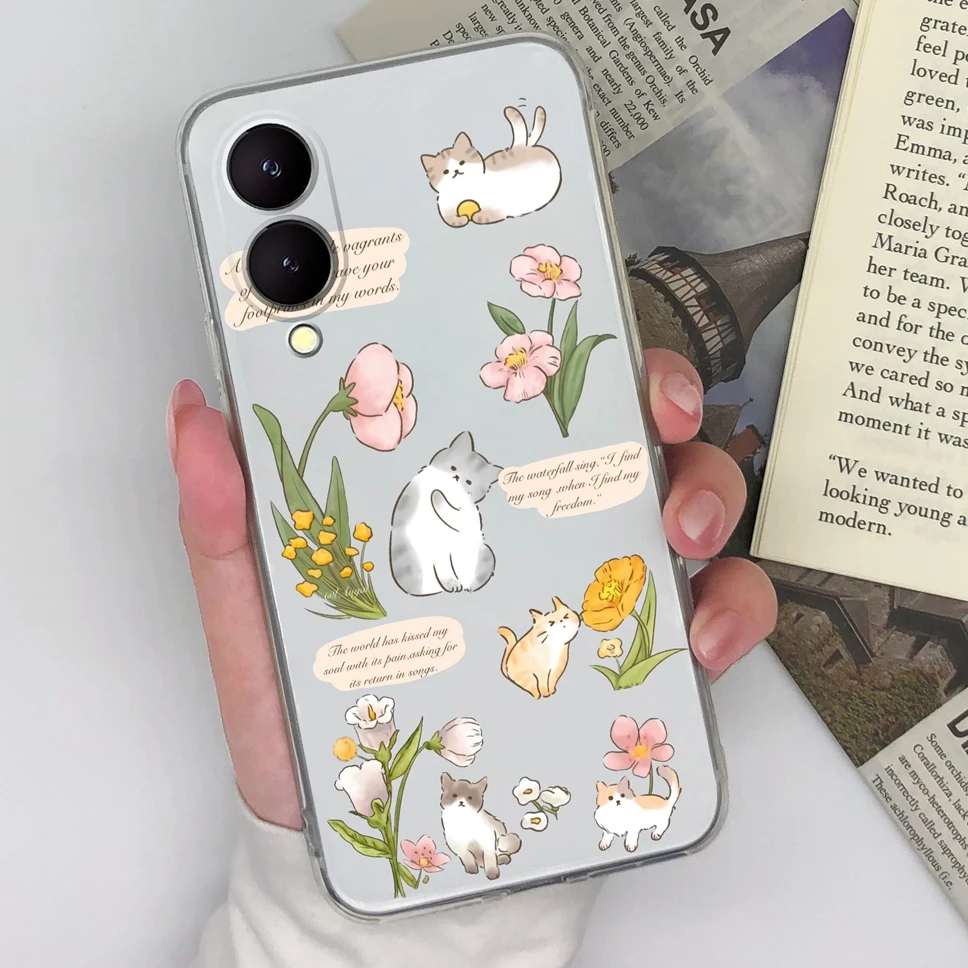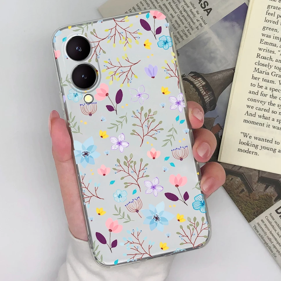 Case For Vivo Y17 S Y17S Y16 Transparent Soft Silicone Pretty Flowers Back Cover Shell For VivoY17 Vivo Y 17 Y 16 Fundas Coque