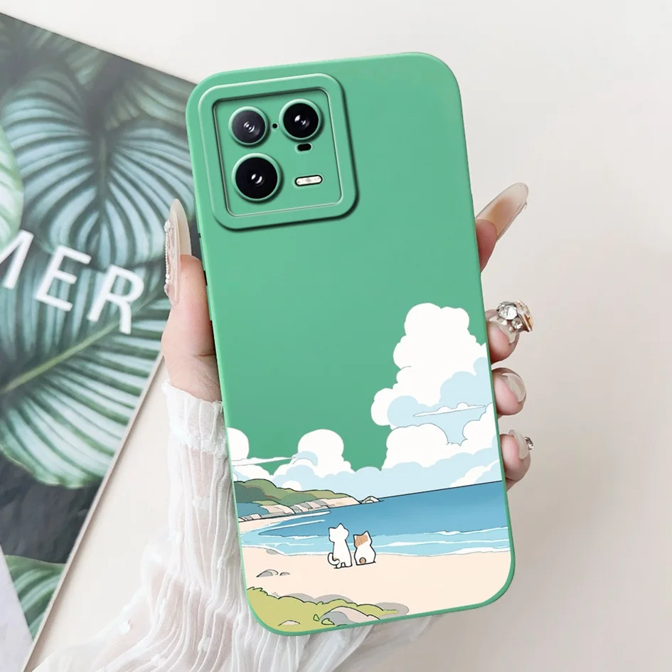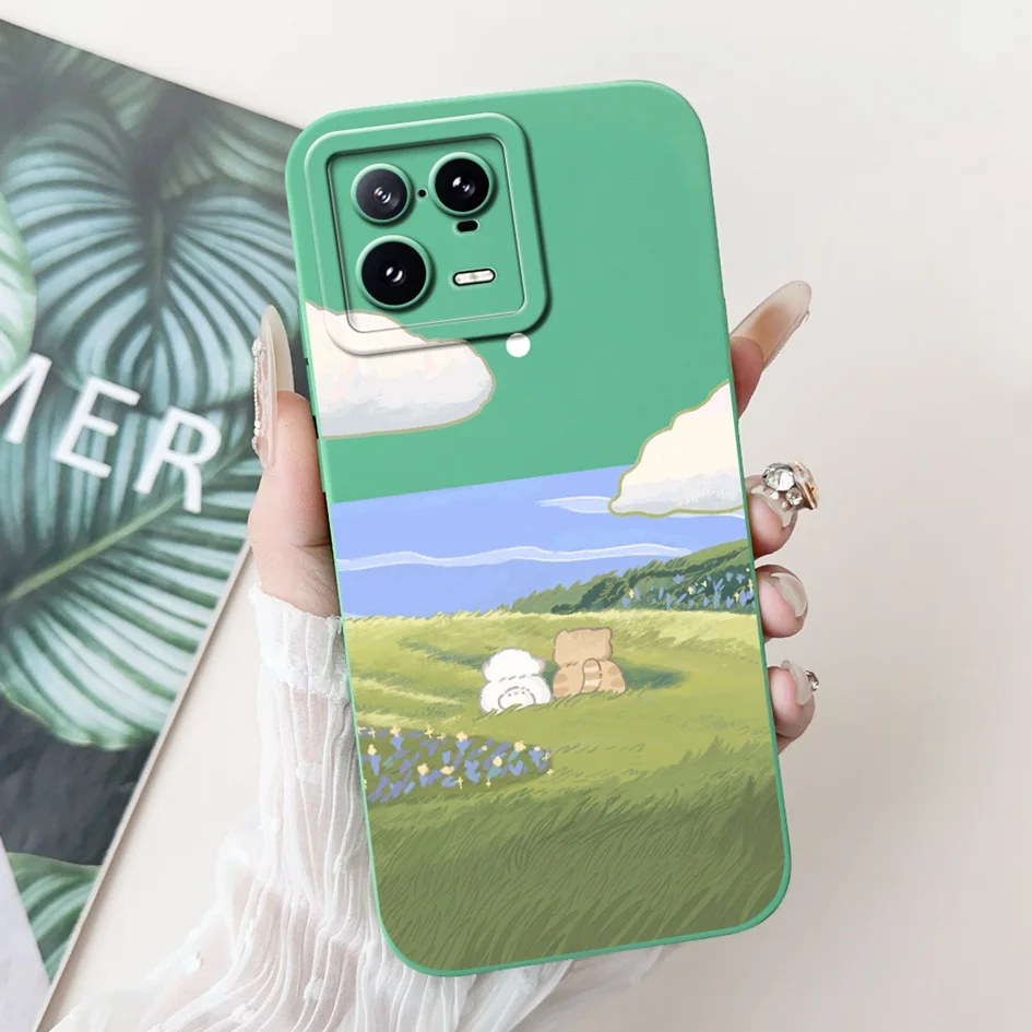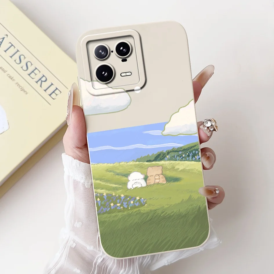 Funda para Xiaomi 13 funda Mi 13 Pro funda protectora de cámara de silicona líquida fundas suaves para Xiaomi Mi 13 Xiomi13 Pro Coque de dibujos animados
