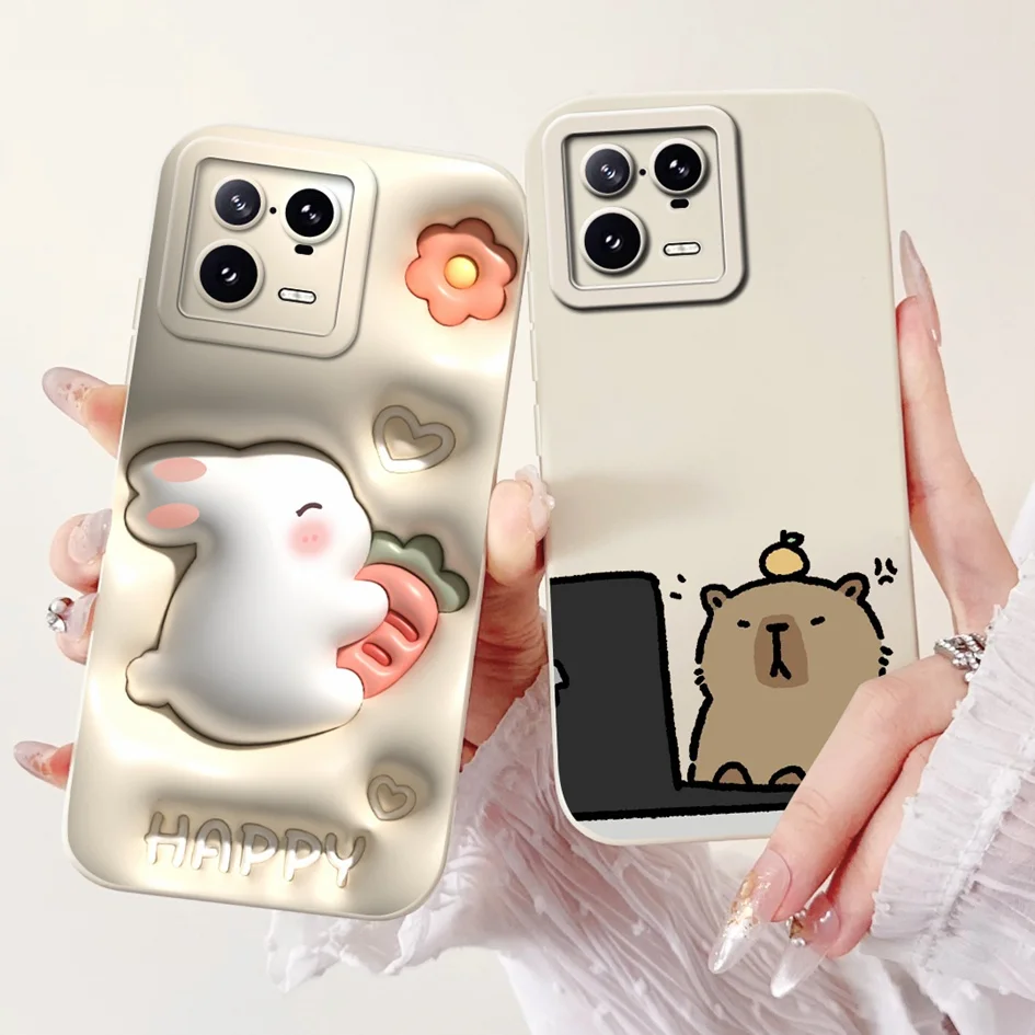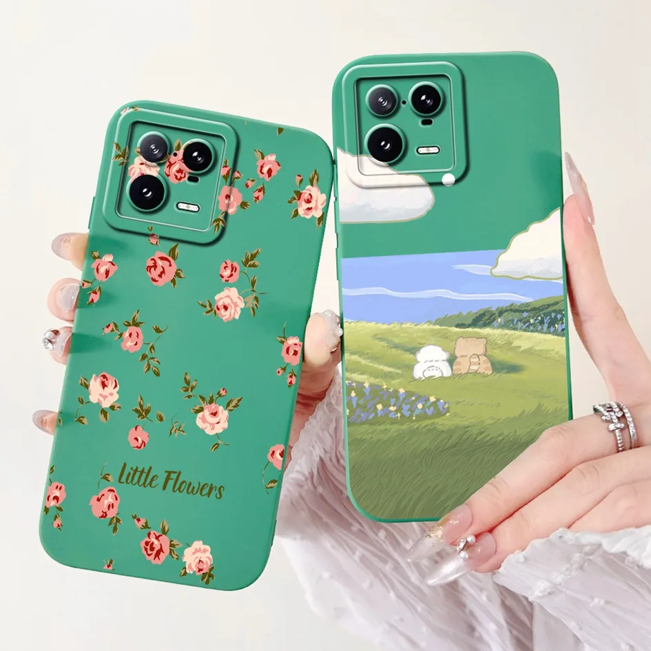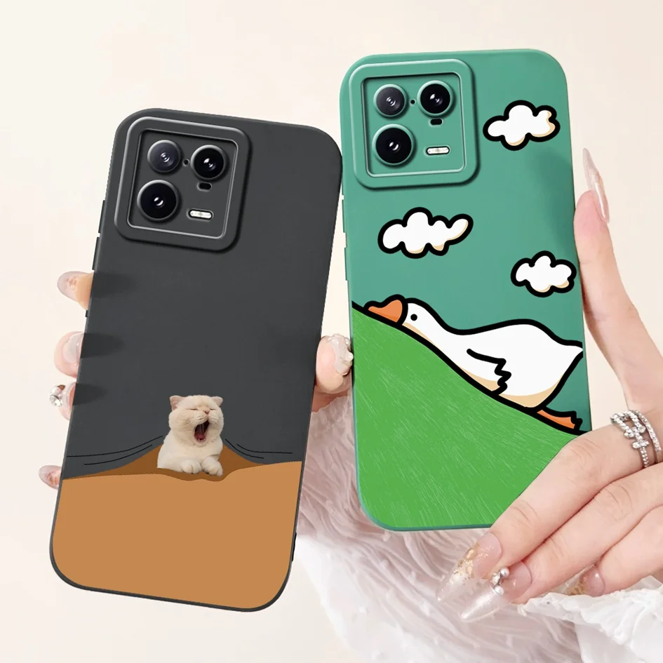 Funda para Xiaomi 13 funda Mi 13 Pro funda protectora de cámara de silicona líquida fundas suaves para Xiaomi Mi 13 Xiomi13 Pro Coque de dibujos animados