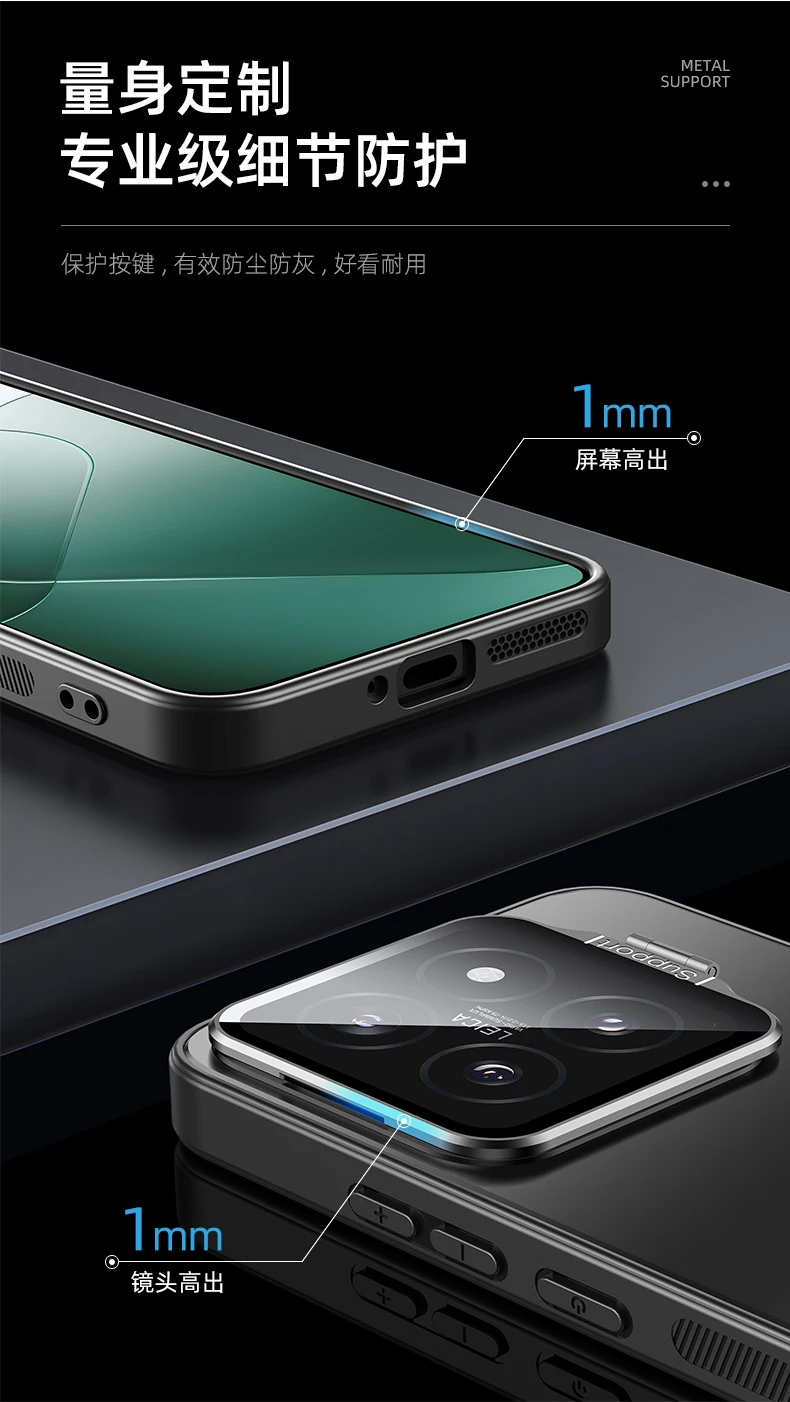 Funda para Xiaomi 14 Pro, lente de Metal de lujo, protección completa, funda antideslizante para Mi 14 Pro, Funda de parachoques a prueba de golpes
