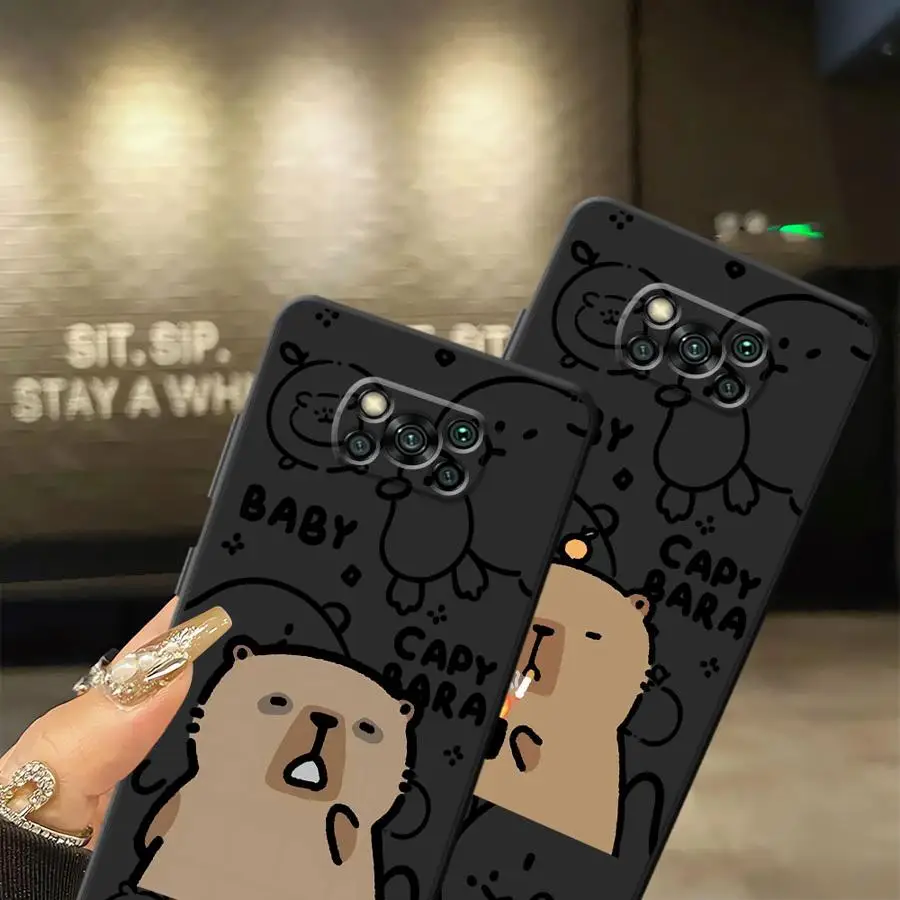 Funda para Xiaomi Poco C61 F3 M5 C50 C40 C75 M3 M4 M7 Pro X3 X4 X5 X7 Pro F1 C71 funda negra suave para teléfono capibara dibujos animados divertidos