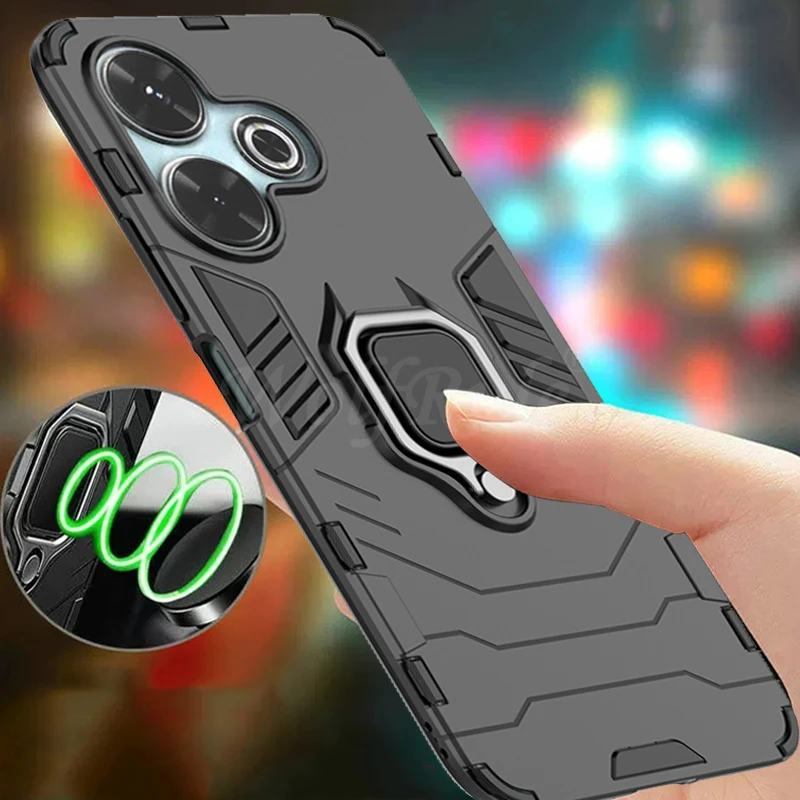 Comprar Funda para Xiaomi Redmi 13, carcasa a prueba de golpes, soporte de anillo para PC, armadura magnética