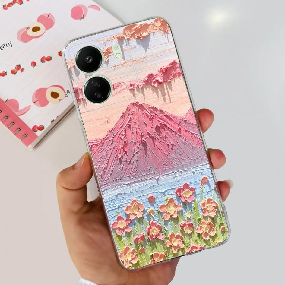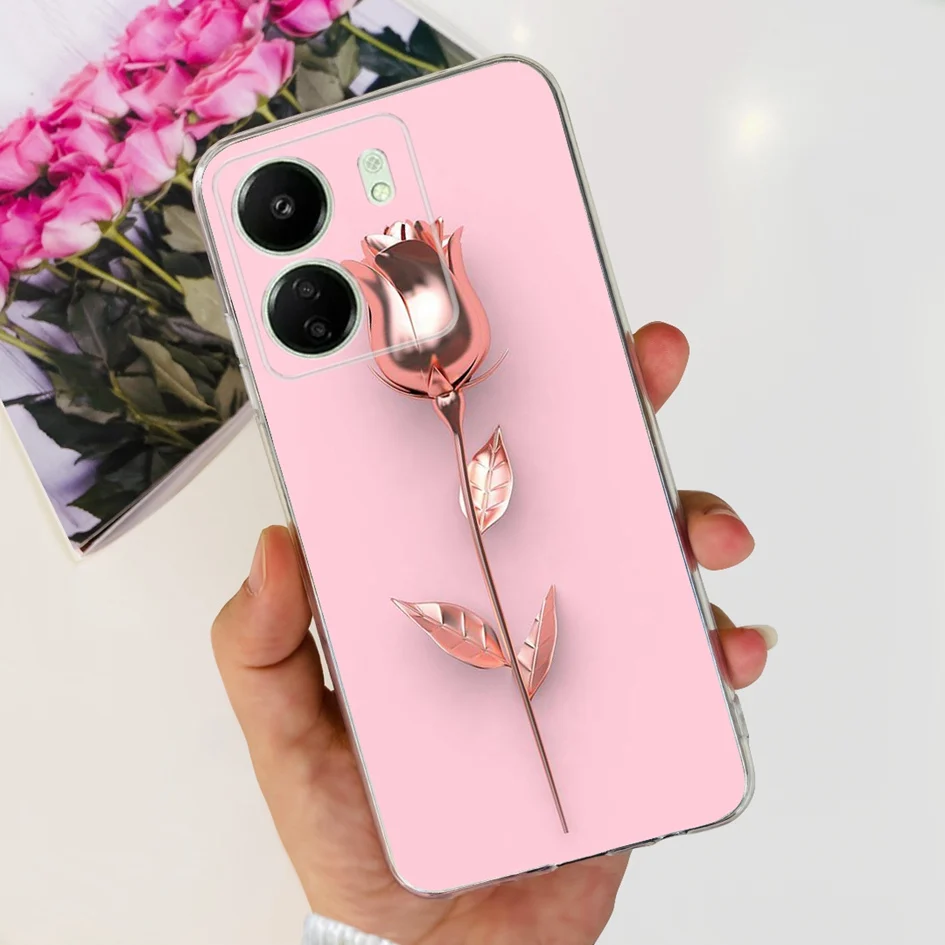 Para Xiaomi Redmi 13C Funda Global Redmi 12C 13C Funda elegante flor transparente TPU Funda trasera suave para Xiomi Redmi 13C Redmi13C Funda