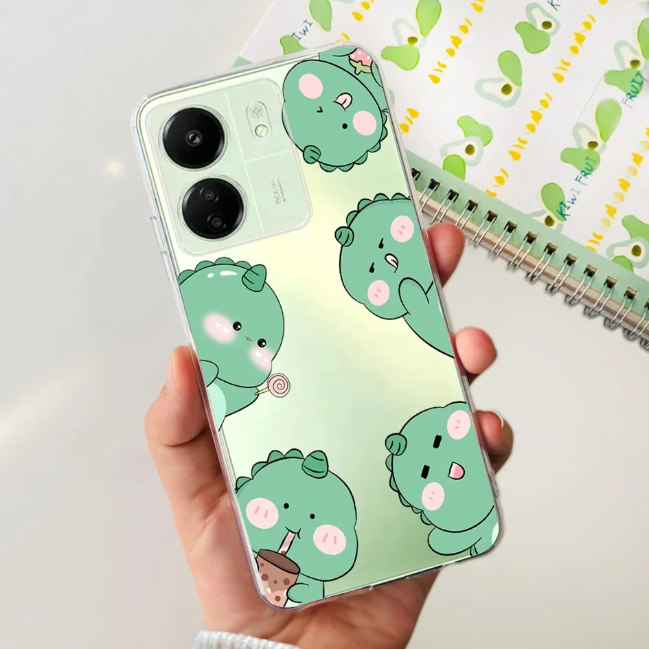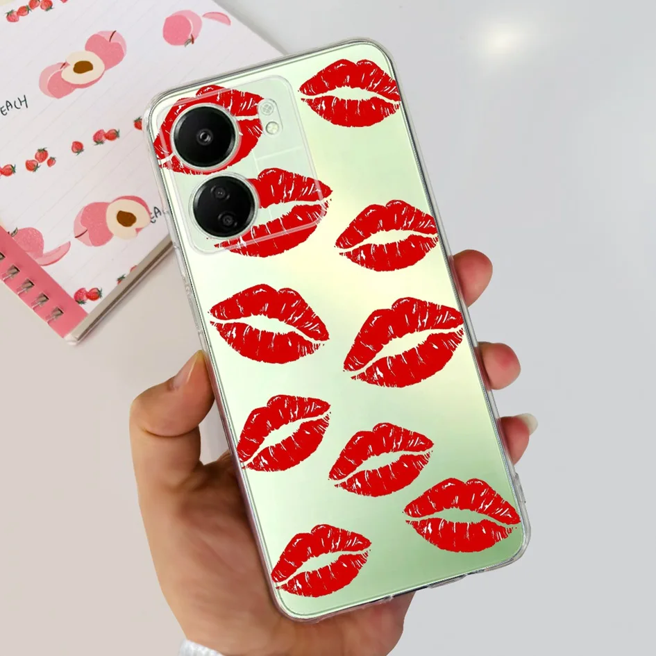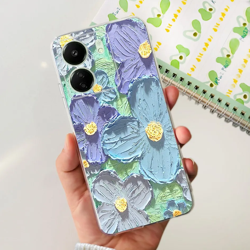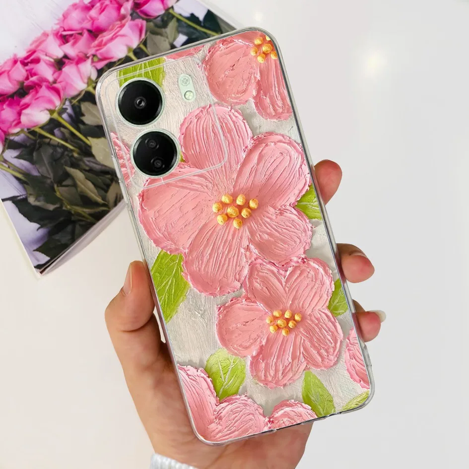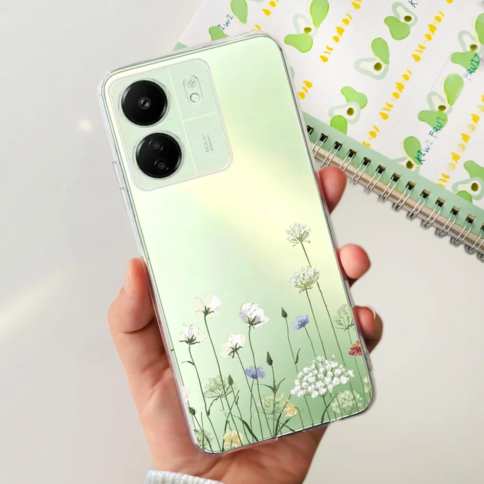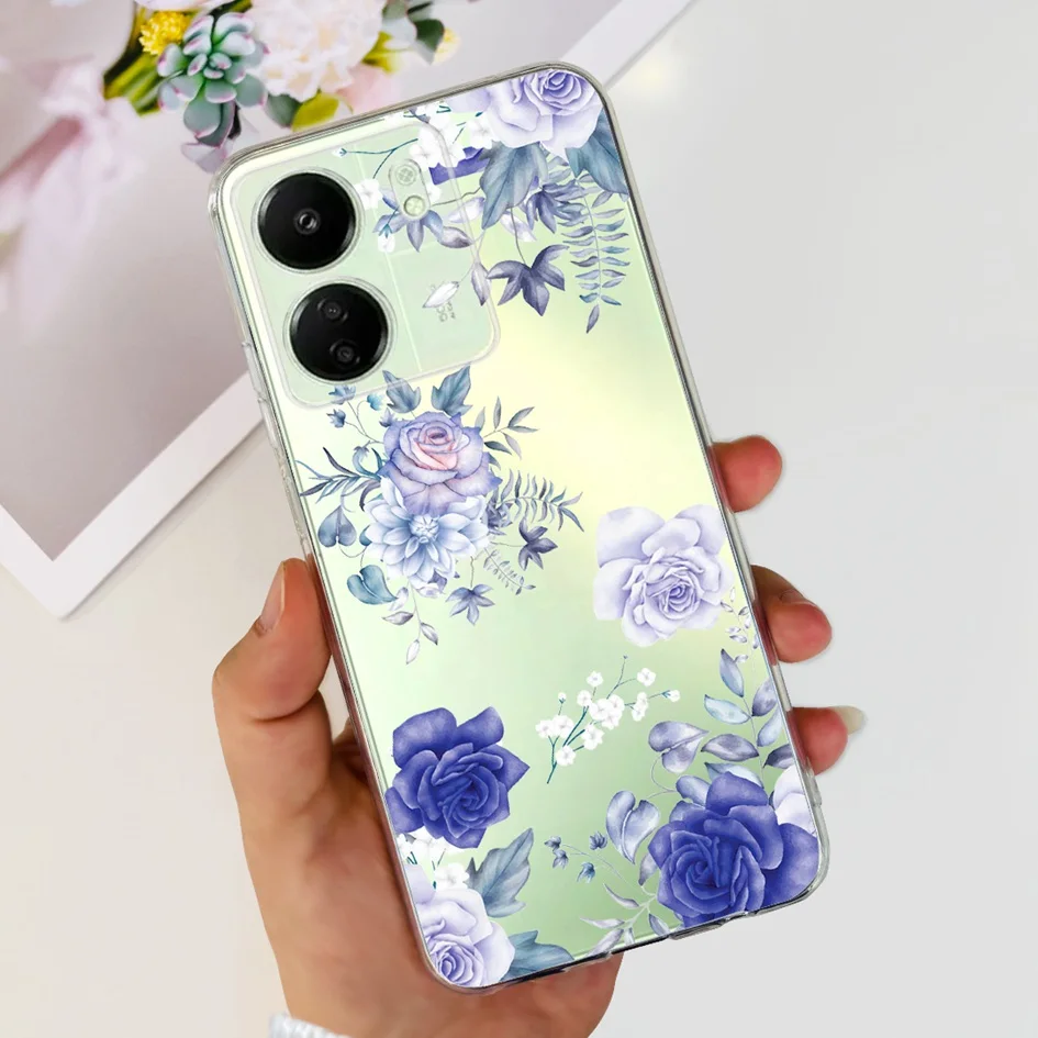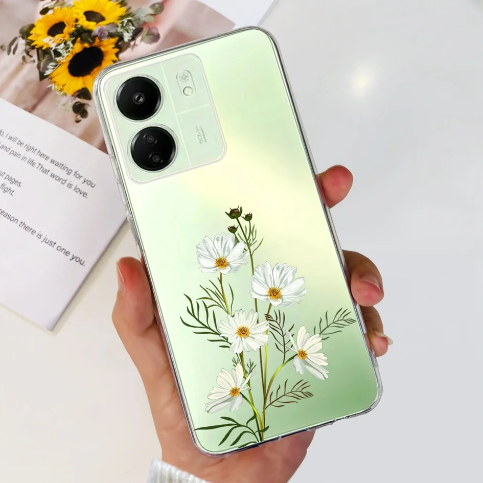 Comprar Funda para Xiaomi Redmi 13C Global, cubierta trasera suave de TPU transparente con flores, elegante, 12C, 13C