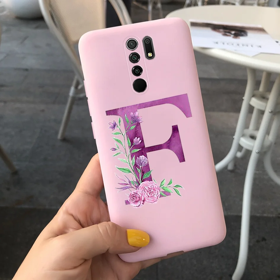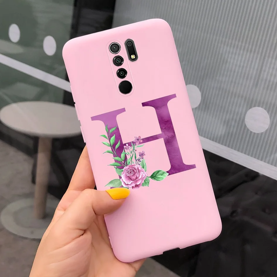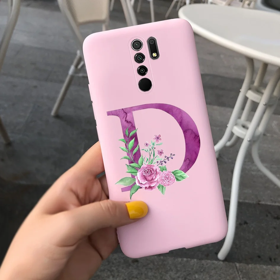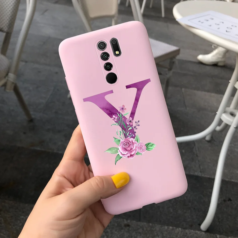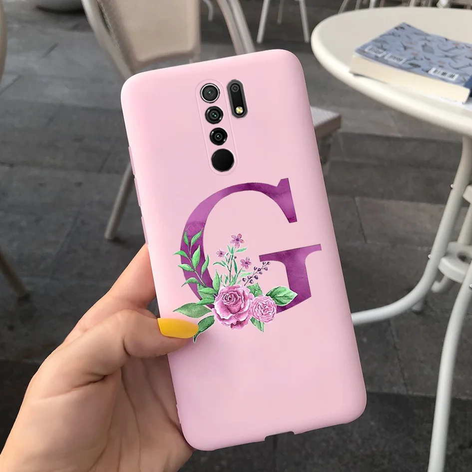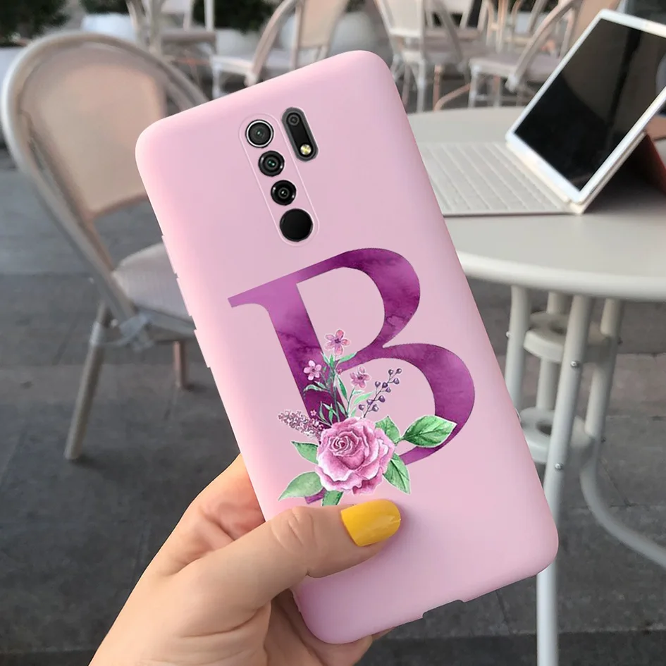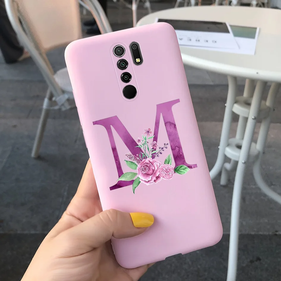 For Cover Xiaomi Redmi 9 Case Alphabet Letters Flower Soft Silicone Fundas For Redmi 9 redmi9 Bumper Shockproof Phone Case 6.53"