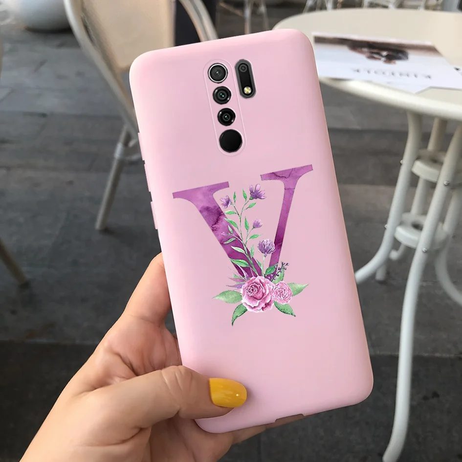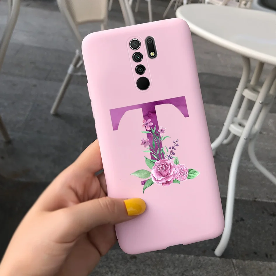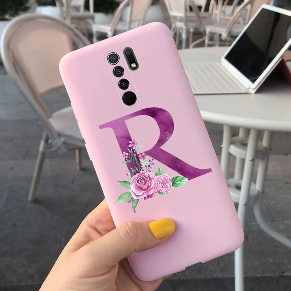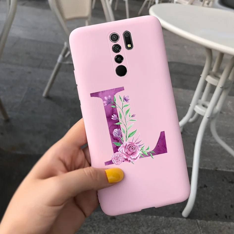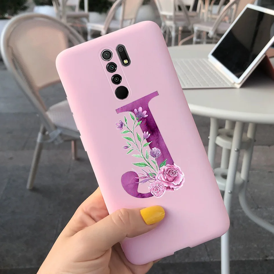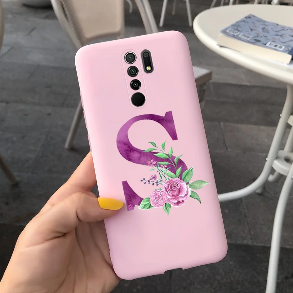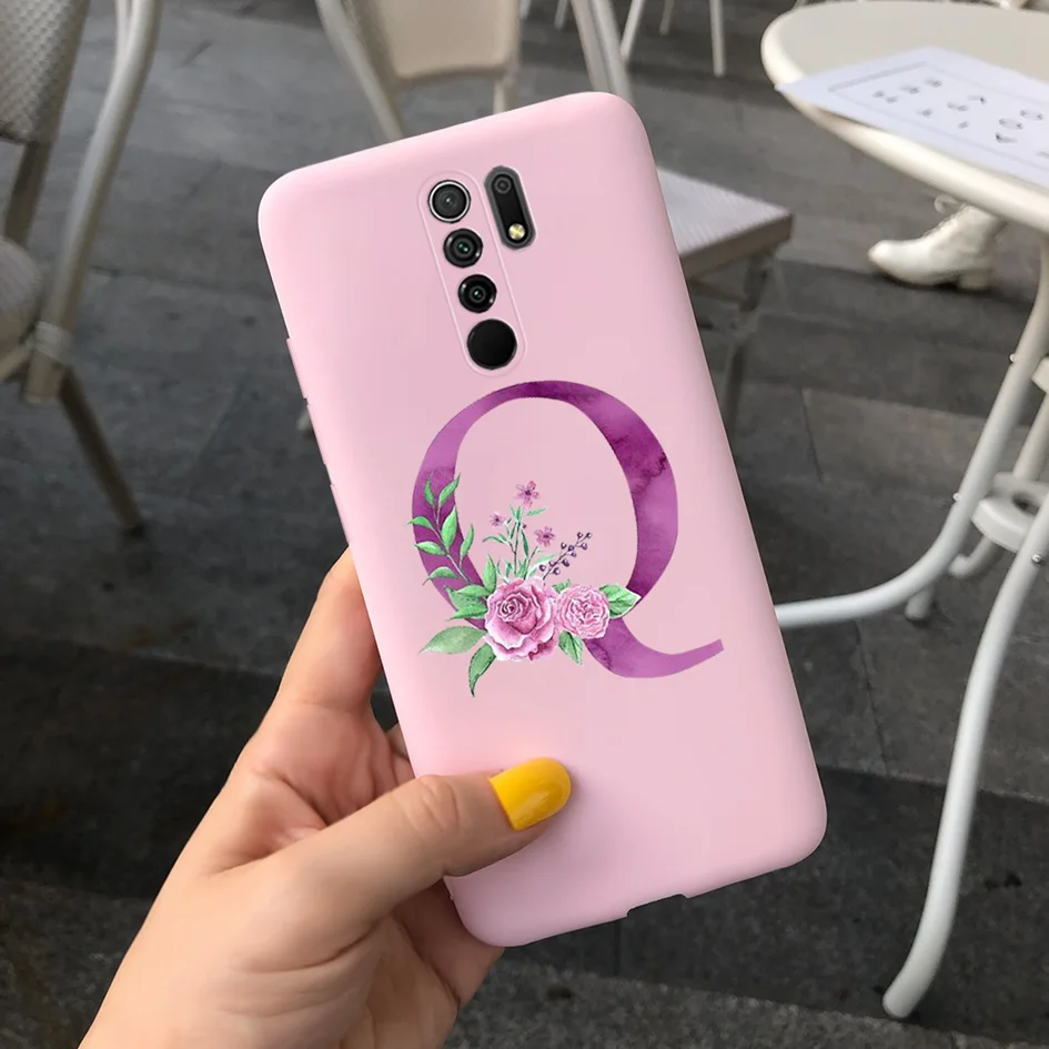 For Cover Xiaomi Redmi 9 Case Alphabet Letters Flower Soft Silicone Fundas For Redmi 9 redmi9 Bumper Shockproof Phone Case 6.53"