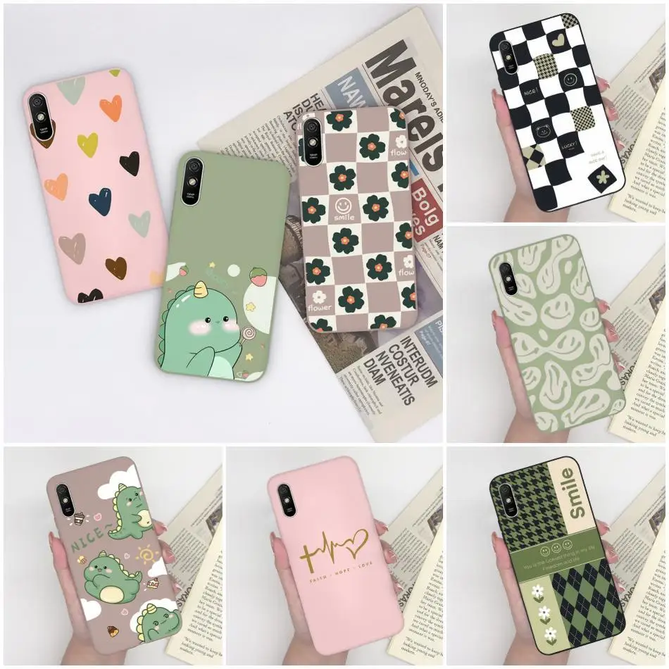 Comprar Funda para Xiaomi Redmi 9A 9AT 9i amor corazón flores patrón de impresión de dibujos animados contraportada para Redmi 9 A 9 AT 9 i colorida Coque