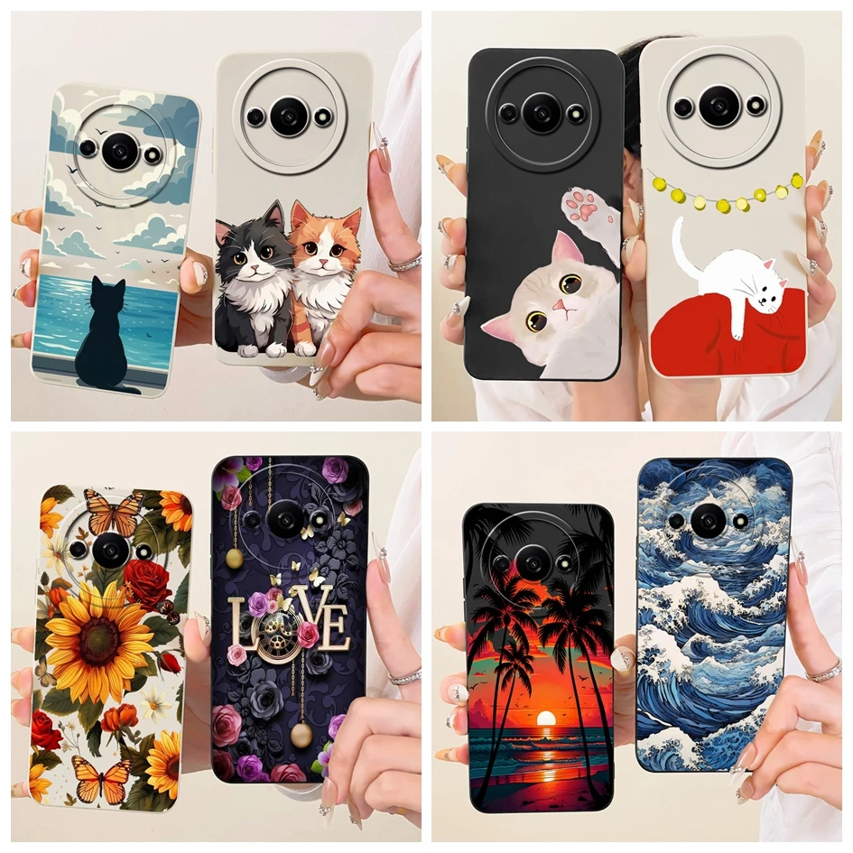 Para funda Xiaomi Redmi A3 A3x funda de teléfono nuevo estilo dibujos animados gato caramelo pintado suave funda trasera de silicona para Xiaomi Poco C61 Fundas