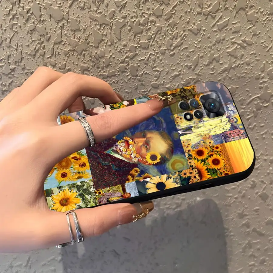 Funda para Xiaomi Redmi Note 11s 10S 9 10 11 12 Pro 13 14 Pro Plus 7 8 12s 9S funda negra suave para teléfono Van Gogh girasoles - imagen 5