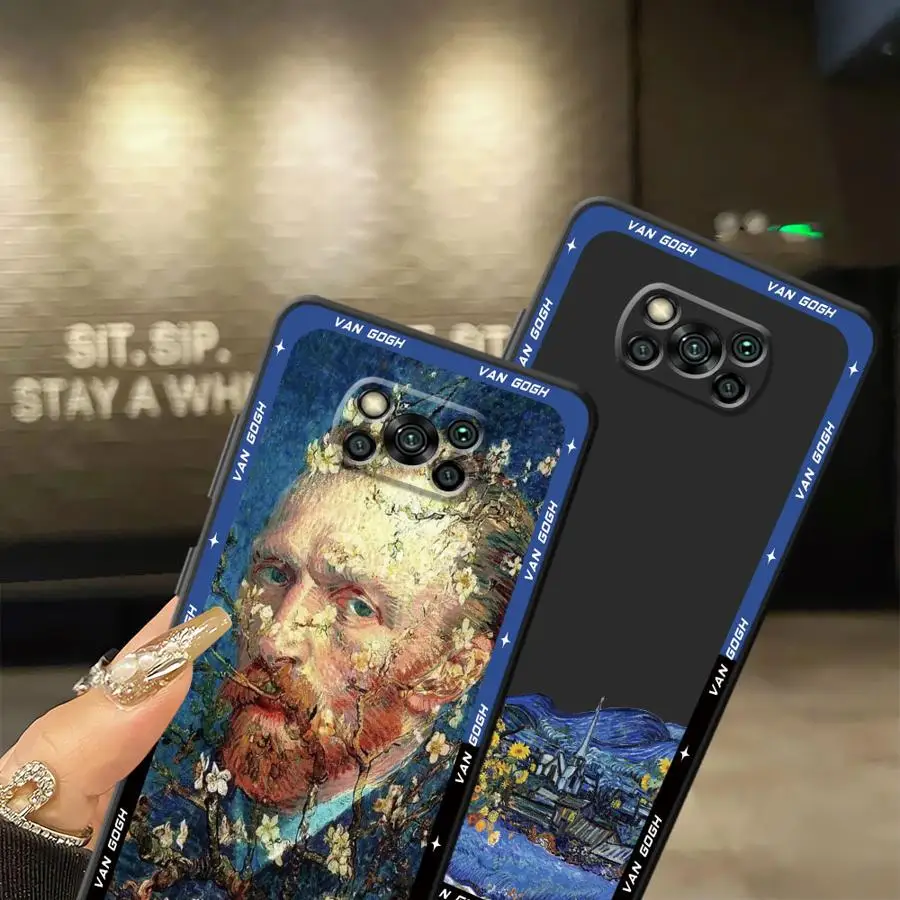 Funda para Xiaomi Poco X3 X4 X5 X7 Pro M5 M3 M4 M7 Pro C50 C75 C71 F1 C40 F3 C61 funda de teléfono suave negra Retro aceite de Van Gogh - imagen 5