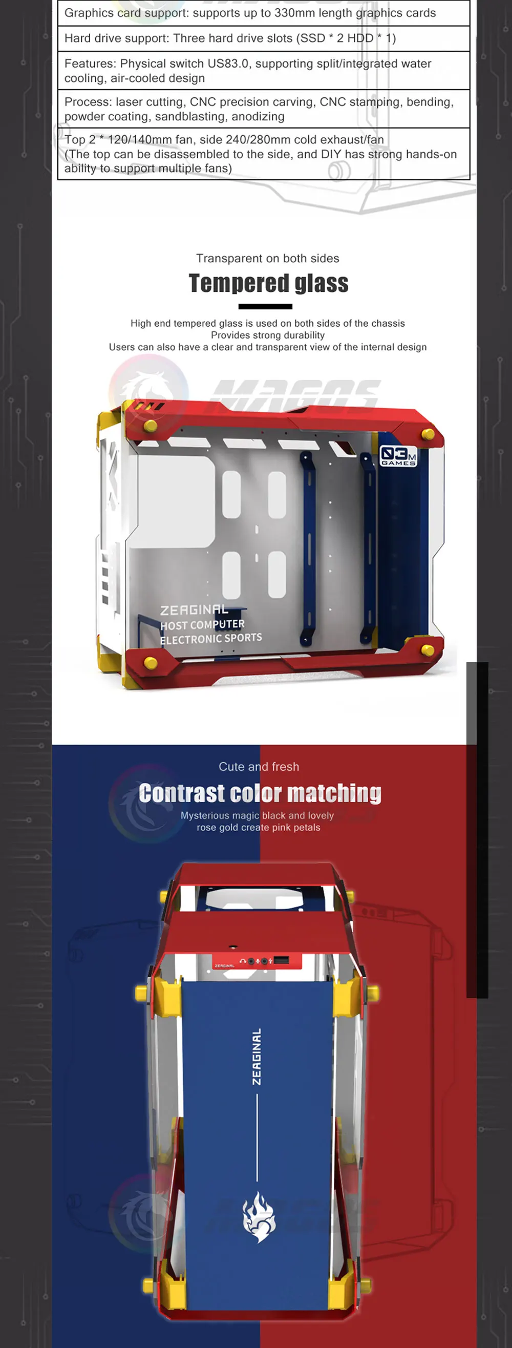 Funda ZC 03M para PC Gamer MOD, gabinete de refrigeración por agua para ordenador, marco de aluminio completo + gafas X2, soporte MATX 240/280, enfriador de agua