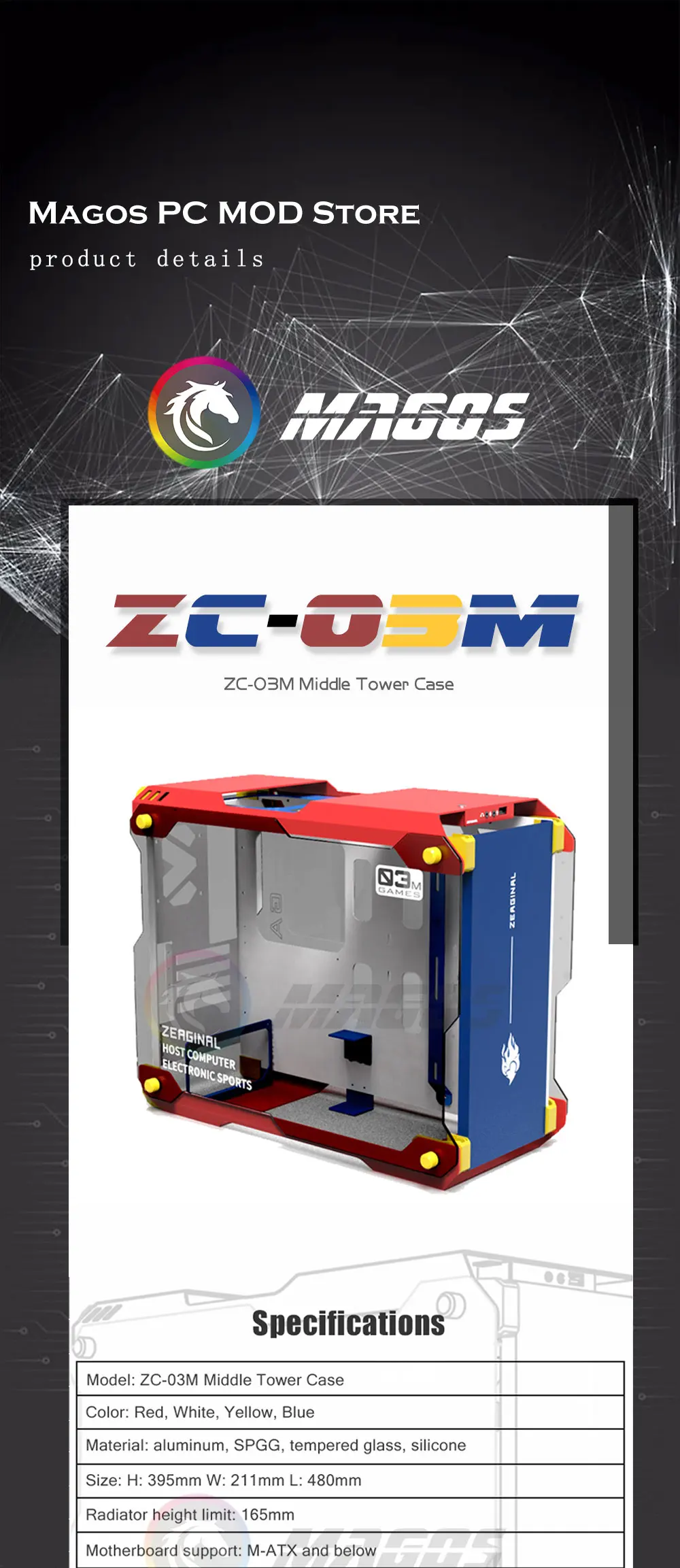 Comprar Funda ZC 03M para PC Gamer MOD, gabinete de refrigeración por agua para ordenador, marco de aluminio completo + gafas X2, soporte MATX 240/280, enfriador de agua