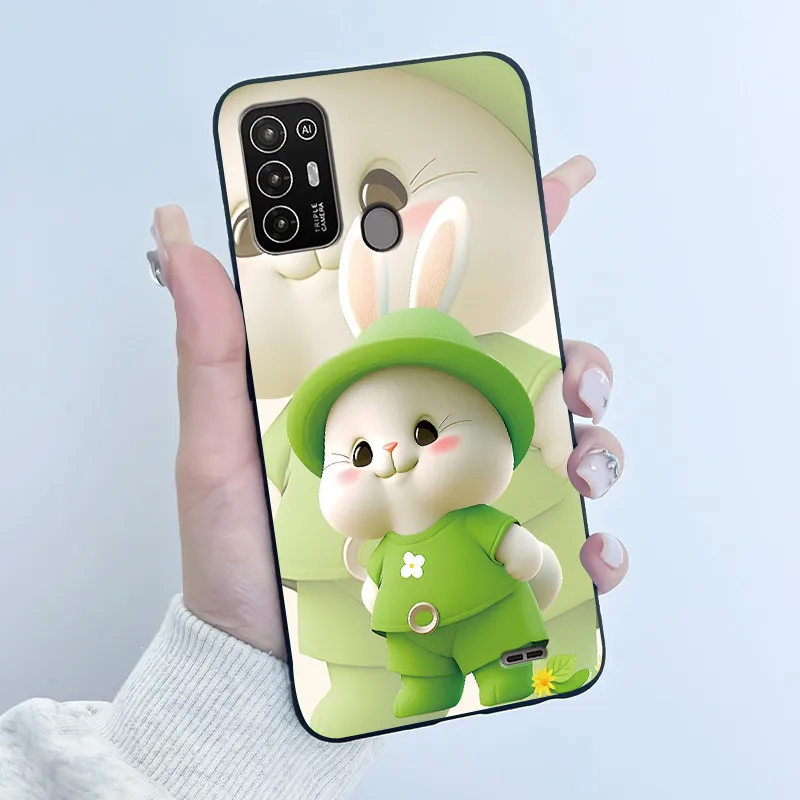 Funda para ZTE BladeA52 Blade A52 Lite, funda negra de TPU de silicona suave, funda de lujo con diseño de conejo de dibujos animados, divertida y bonita