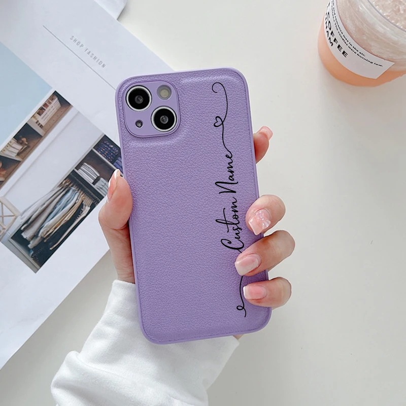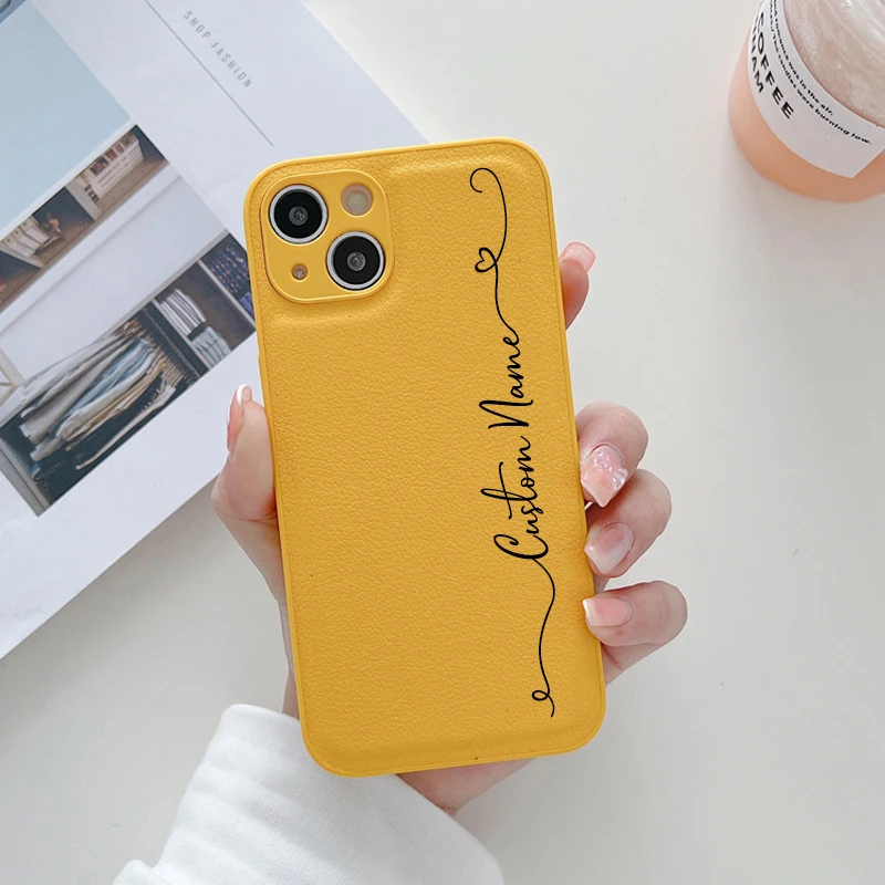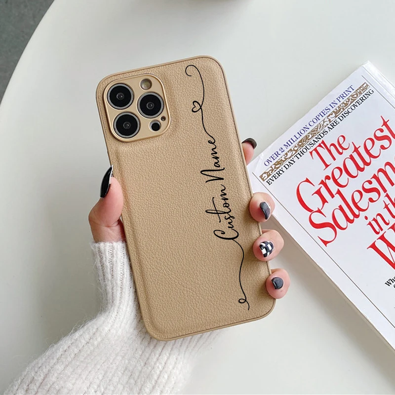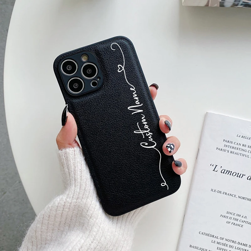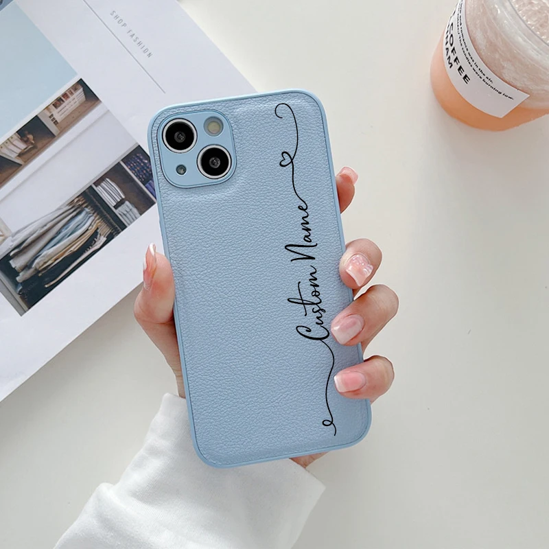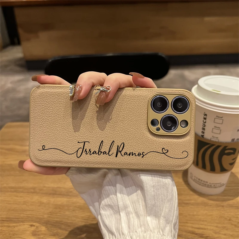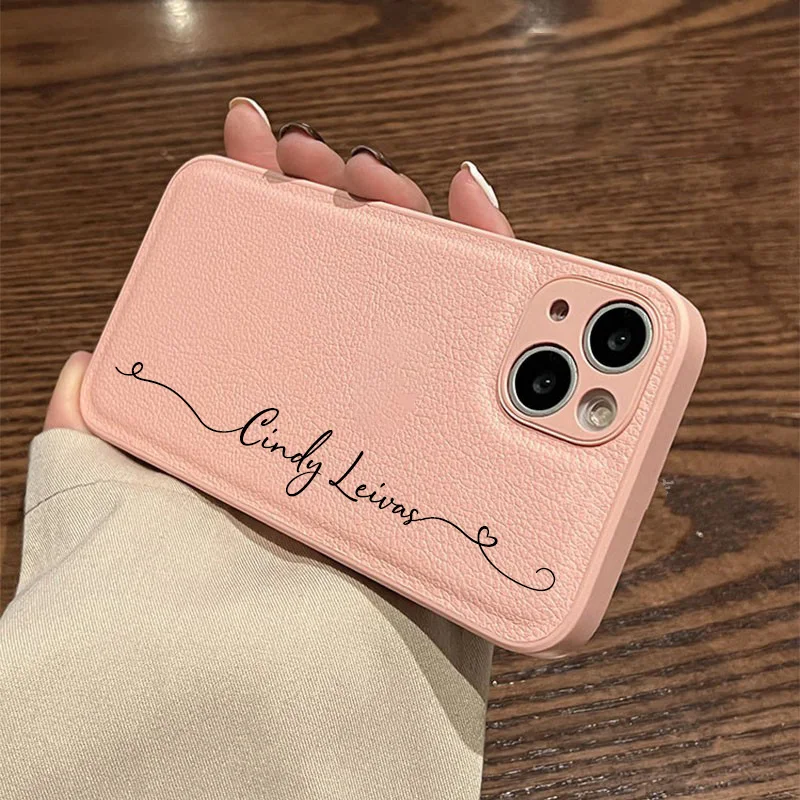 Comprar Fundas de cuero con nombre personalizado para iPhone 15 14 16 7 8 Plus 13 12 11 Pro 16Pro 15Pro 13Pro X XR XS Max 16Plus cubierta de Color blanco y rosa