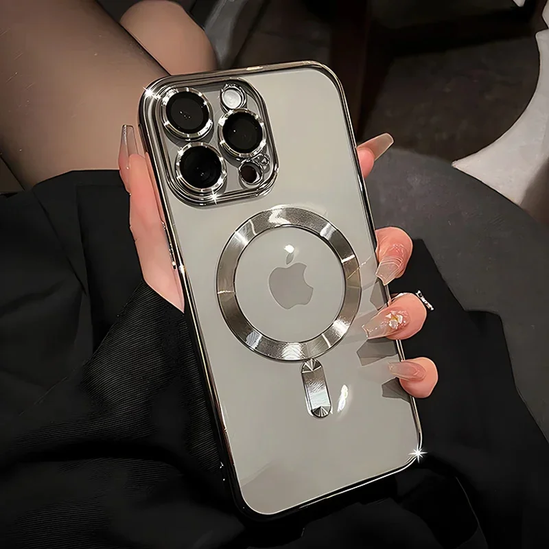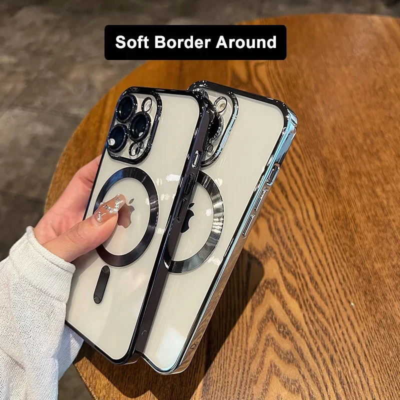 Fundas magnéticas para iPhone 17 Air 16 15 14 13 12 11 Pro Max para funda Magsafe chapada cubierta de carga inalámbrica de silicona suave transparente