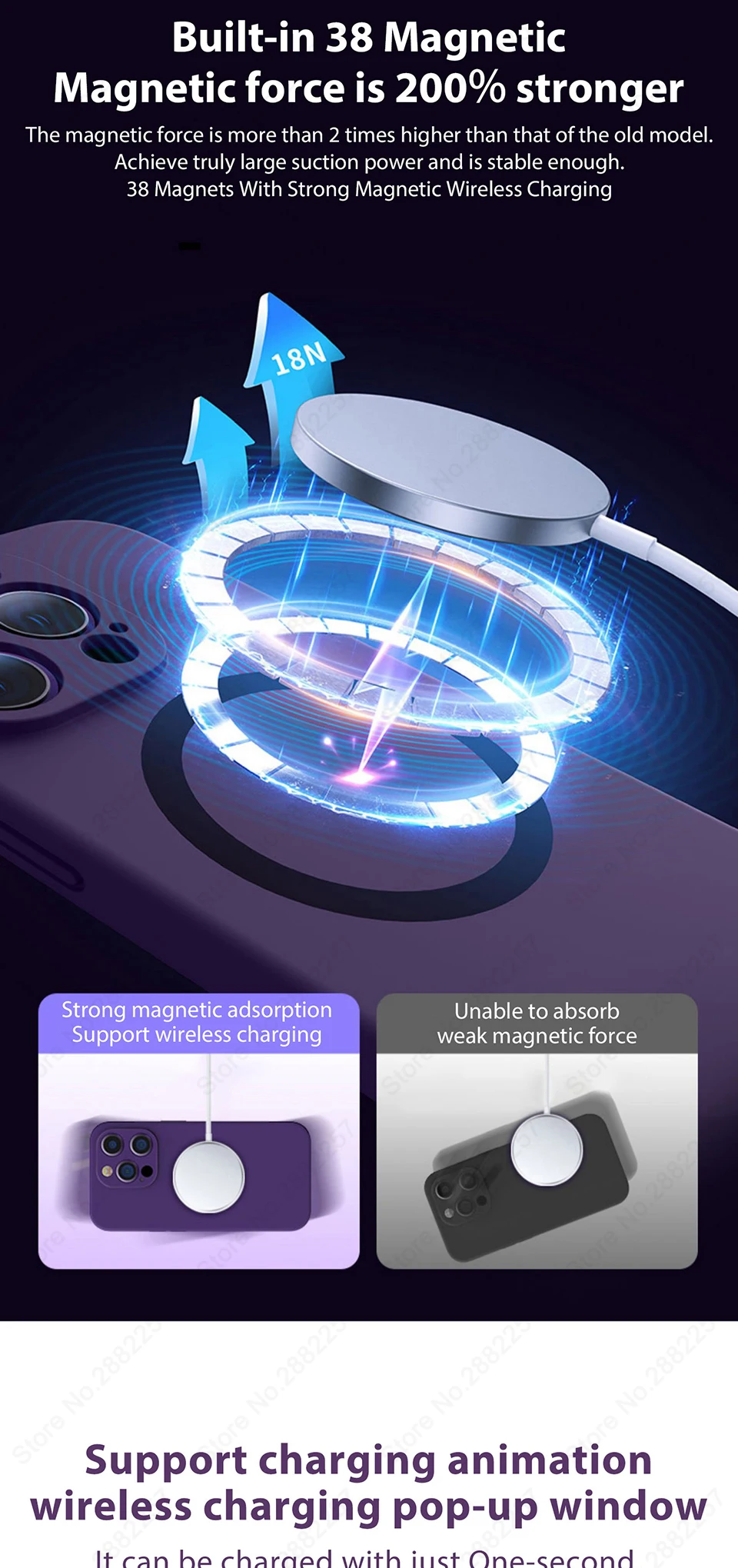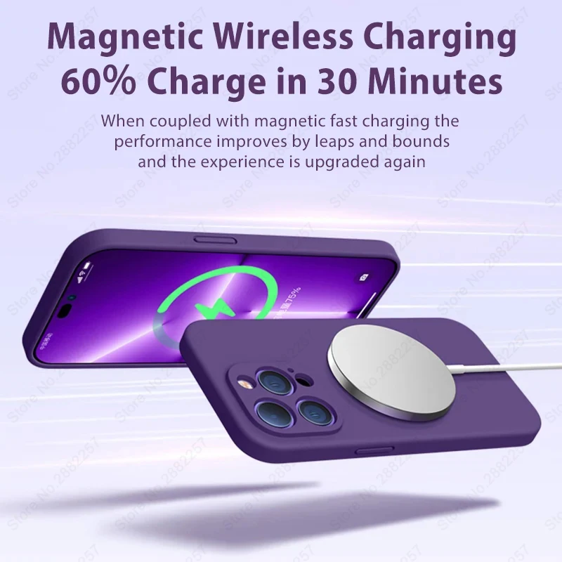 Fundas magnéticas de silicona líquida originales For iPhone, funda movil For Magsafe iPhone 15, 14, 13, 11, 12 Pro Max Plus, accesorios de cubierta a prueba de golpes