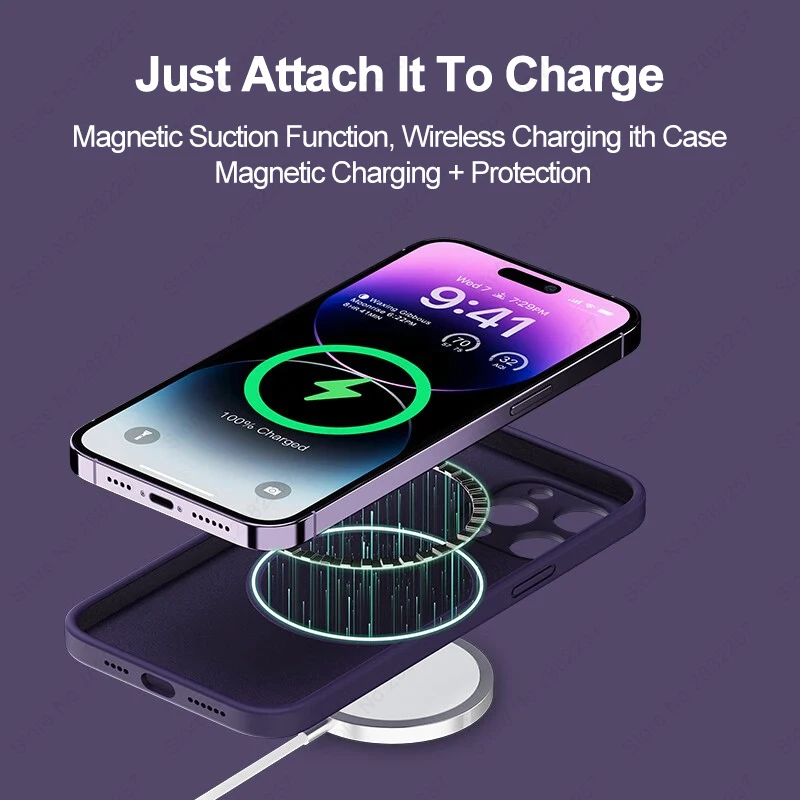 Comprar Fundas magnéticas de silicona líquida originales For iPhone, funda movil For Magsafe iPhone 15, 14, 13, 11, 12 Pro Max Plus, accesorios de cubierta a prueba de golpes