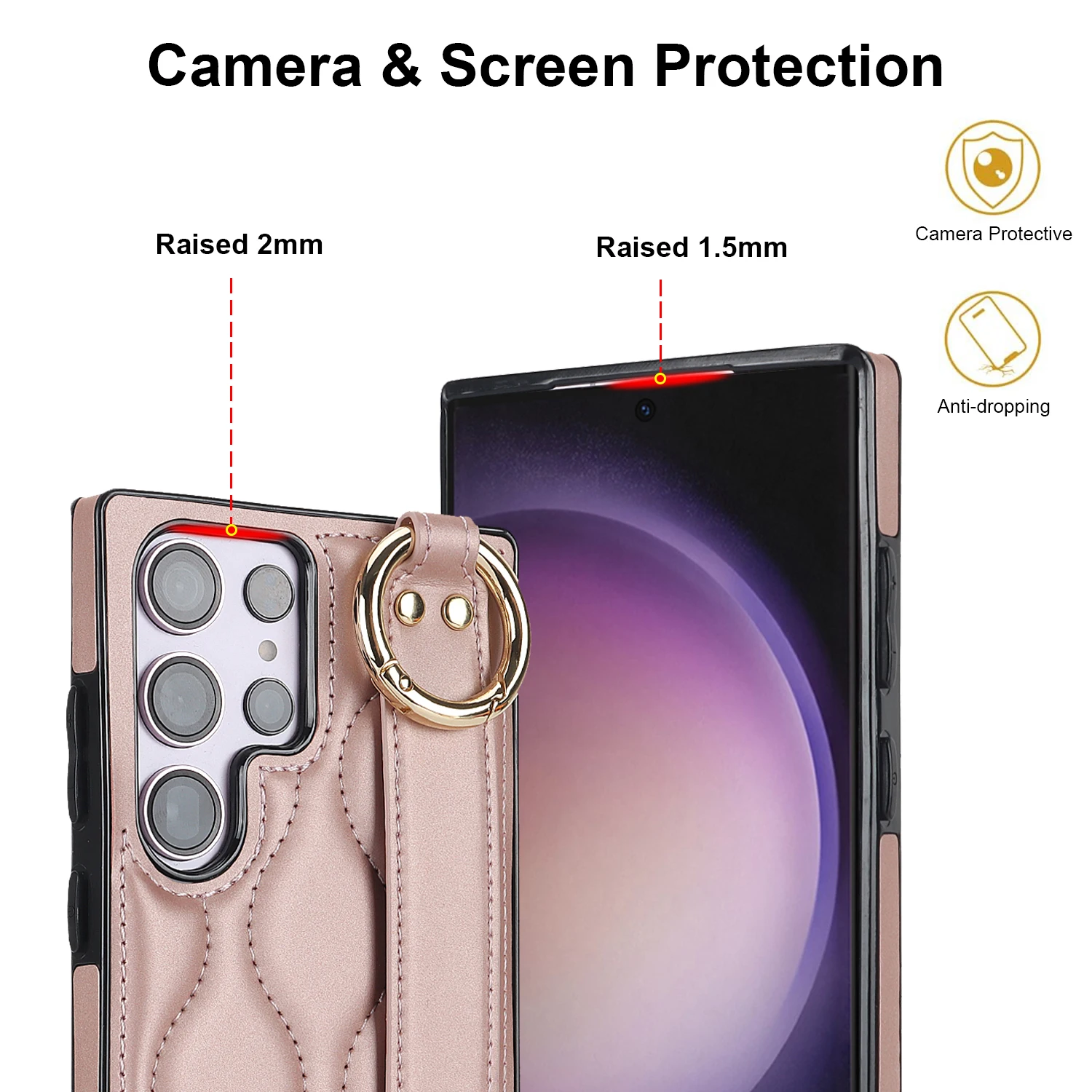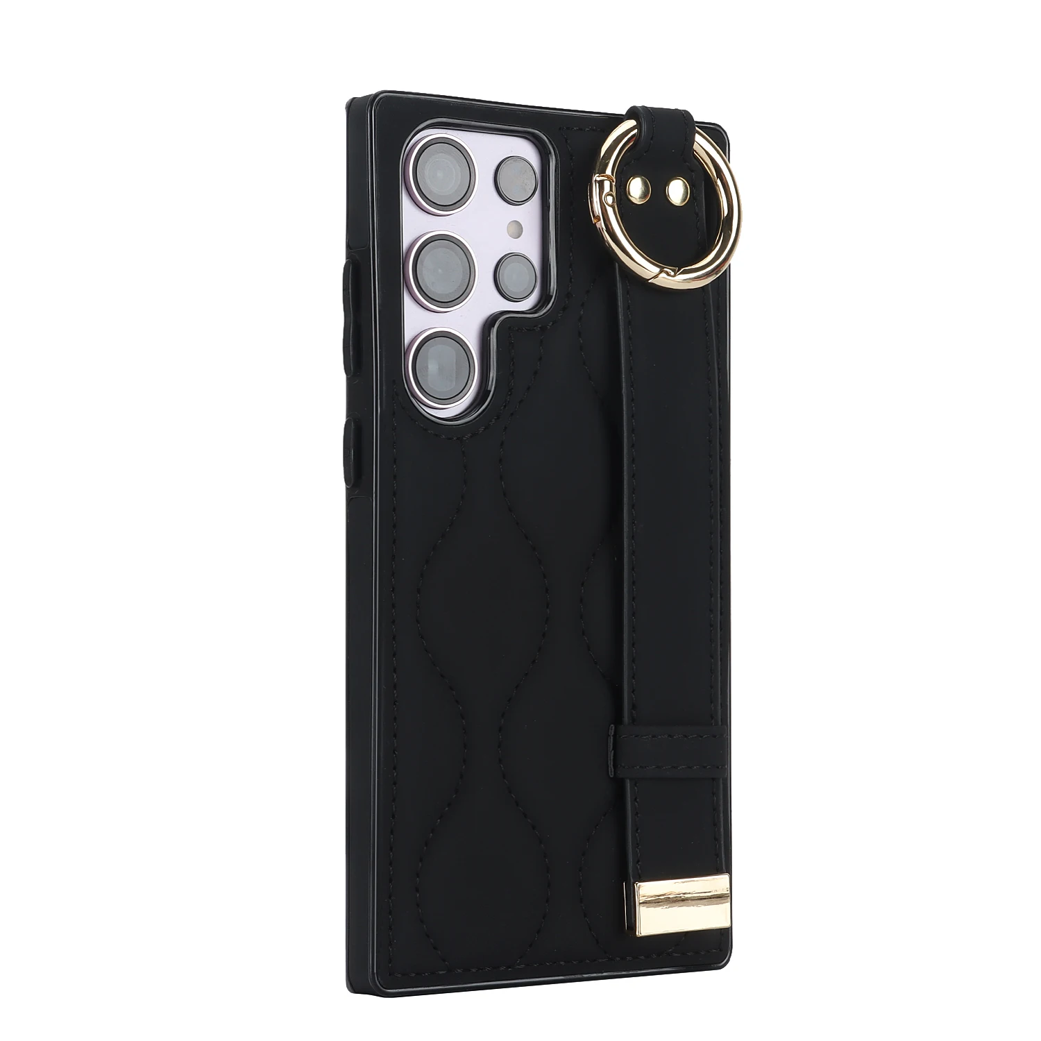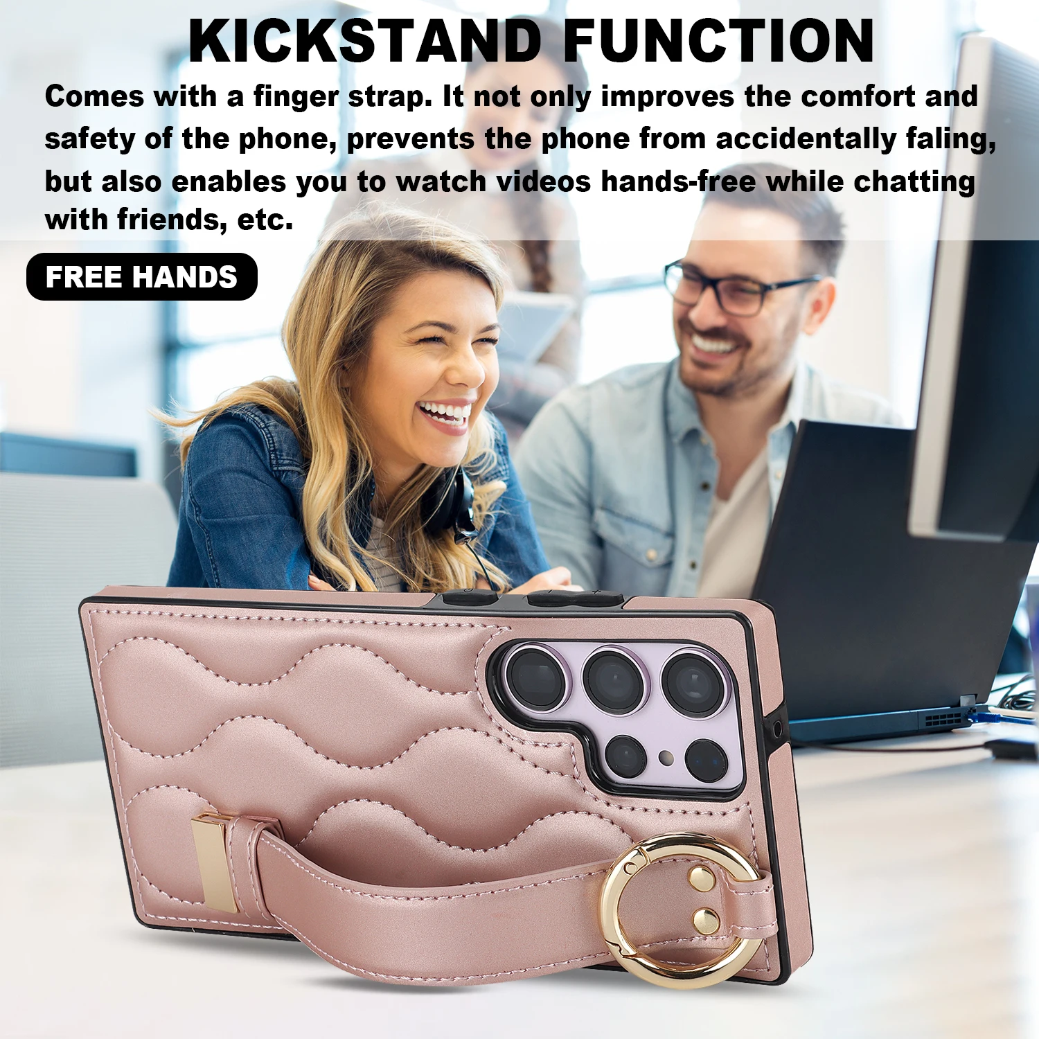 Fundas de teléfono con anillo de cuero PU de lujo para Samsung Galaxy S25 S24 S23 Ultra S22 Plus A14 A53 A54 soporte para correa de muñeca cubierta a prueba de golpes