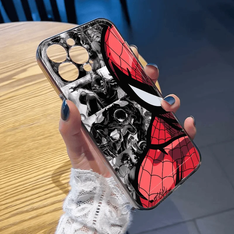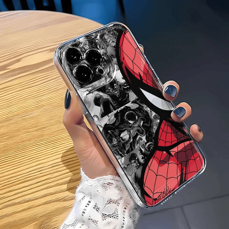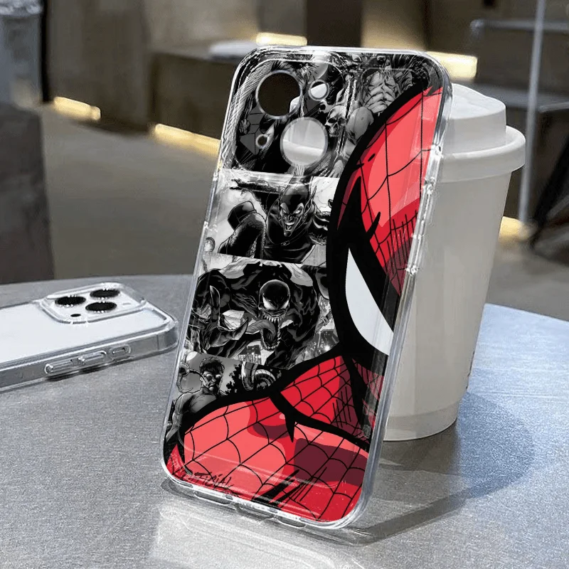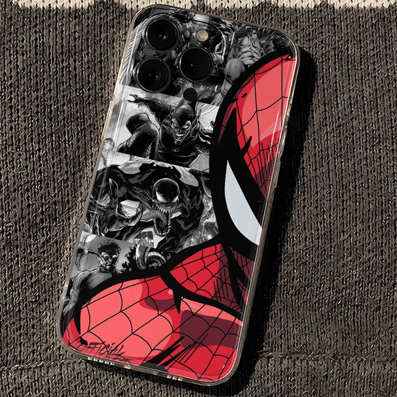 Comprar Fundas de teléfono blandas de media cara de Marvel Spider Man para iPhone 16 15 14 13 Pro Max 13 12 11 Pro X XR XS MAX 8 Plus Y2k Cool