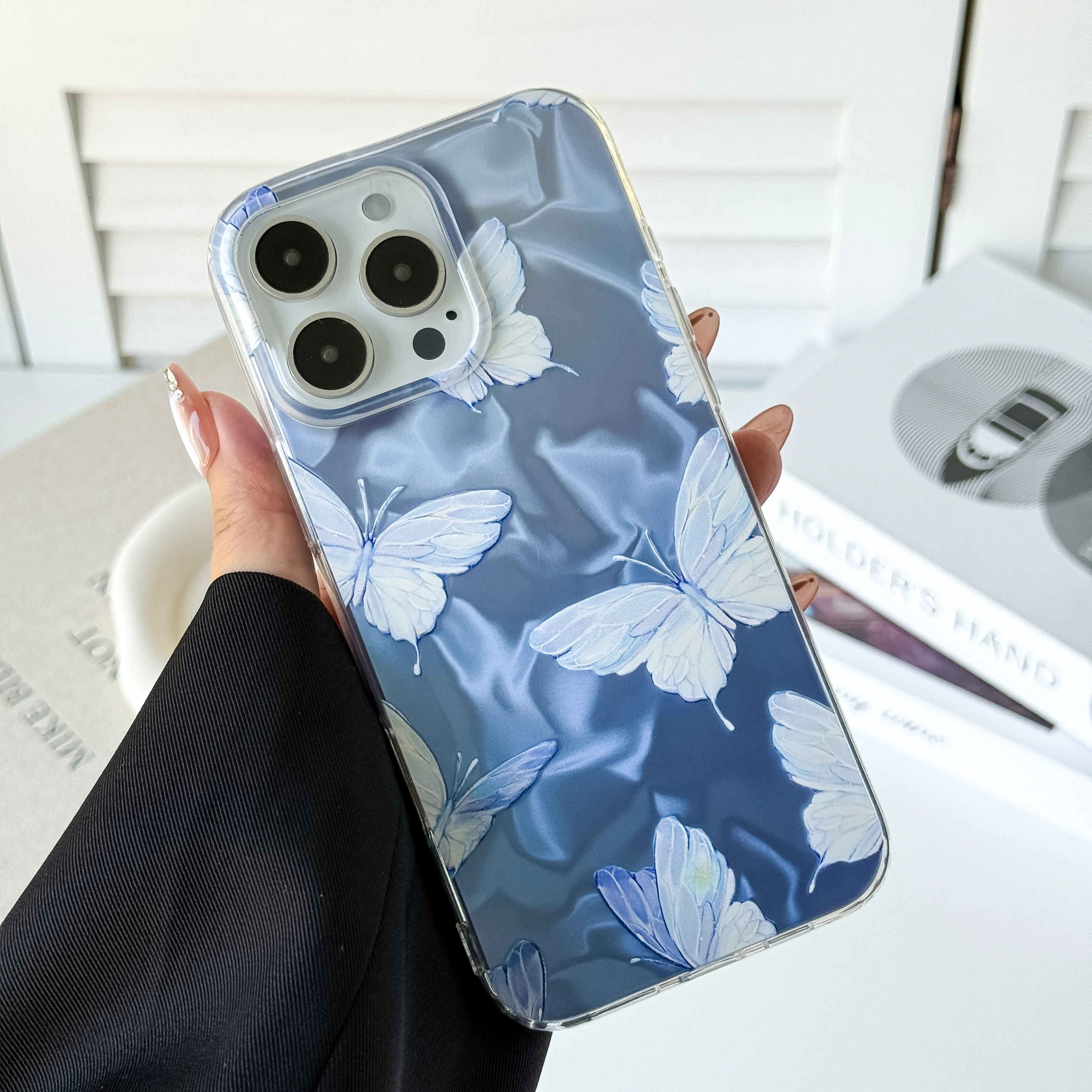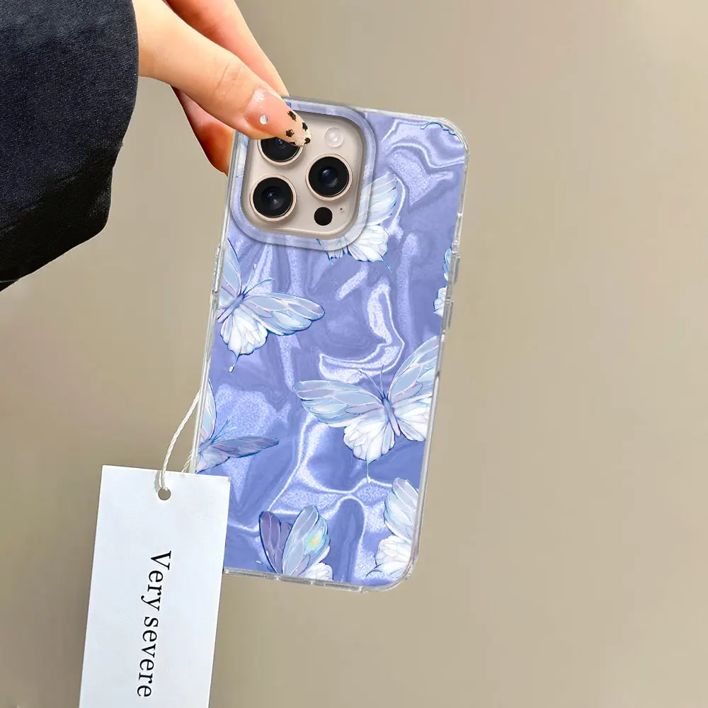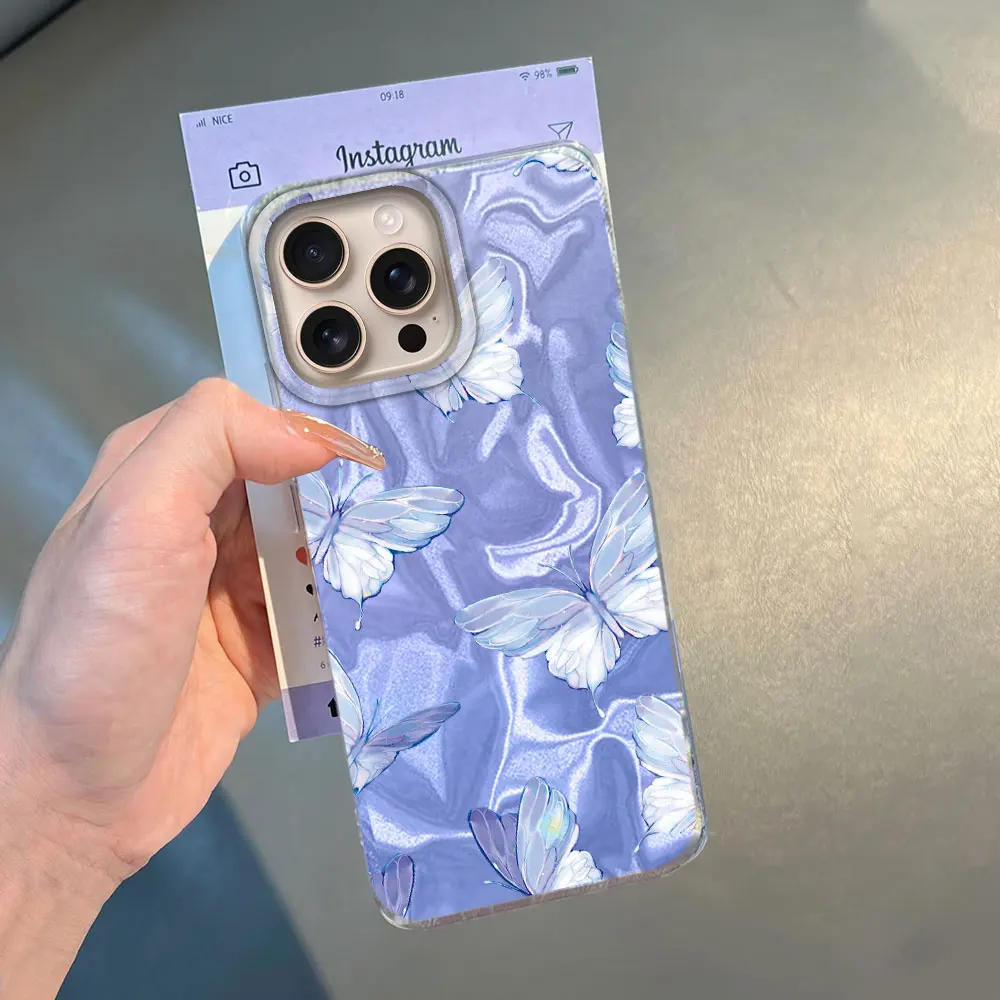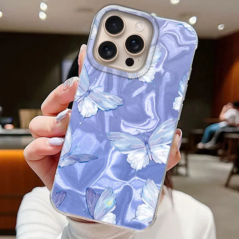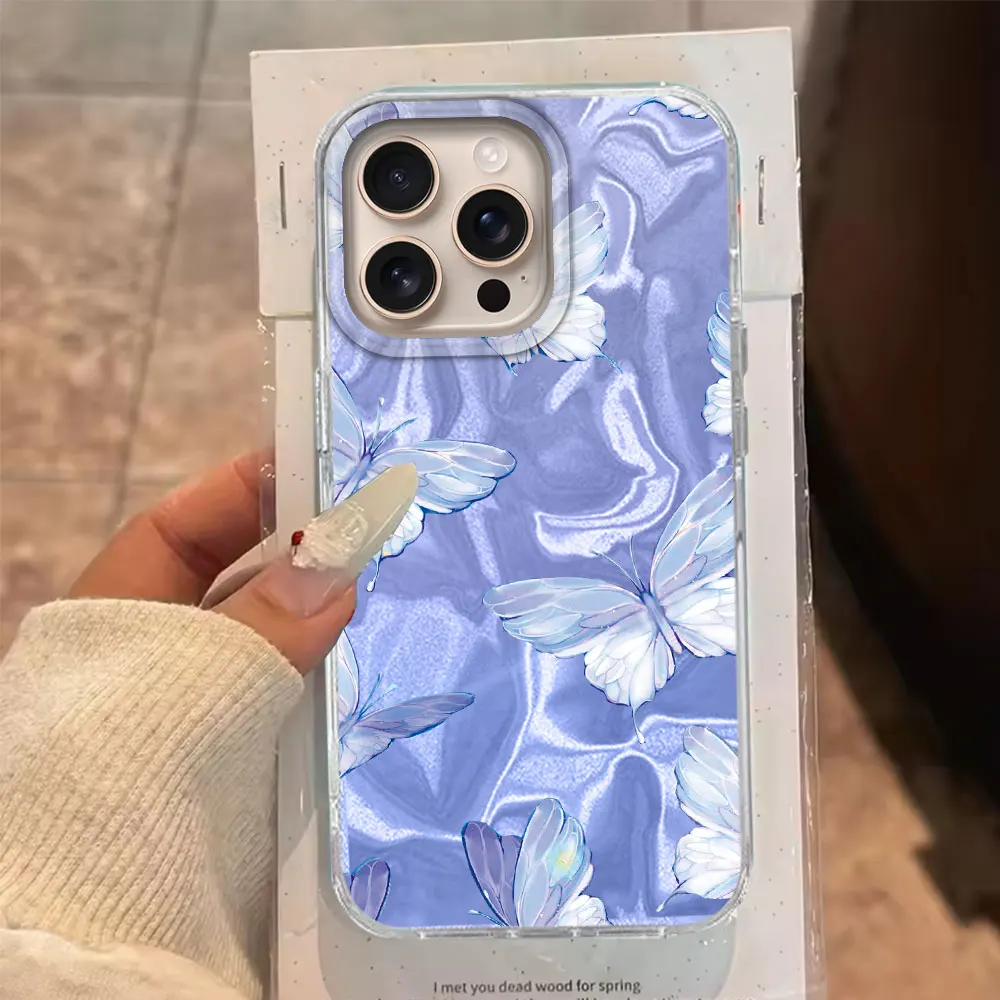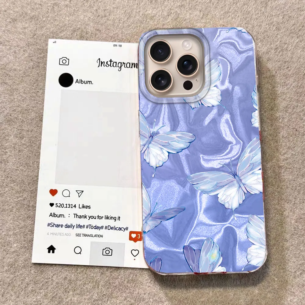 Comprar Fundas de teléfono con gradiente de mariposa azul para Apple iphone 16 15 14 13 Pro Max 7 16e 16plus, funda trasera de silicona para parejas