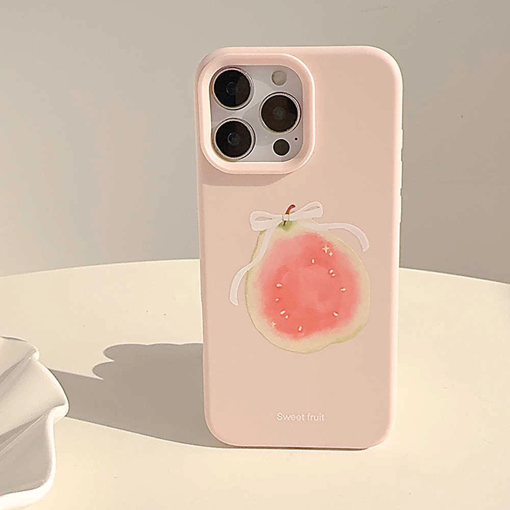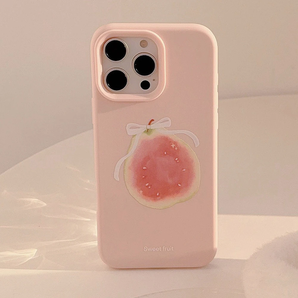 Fundas de teléfono de moda Ins Cute Fruit Guava para IPhone 16 15 Pro 13 14 12 Pro Max 11, funda trasera encantadora coreana de silicona suave a prueba de golpes