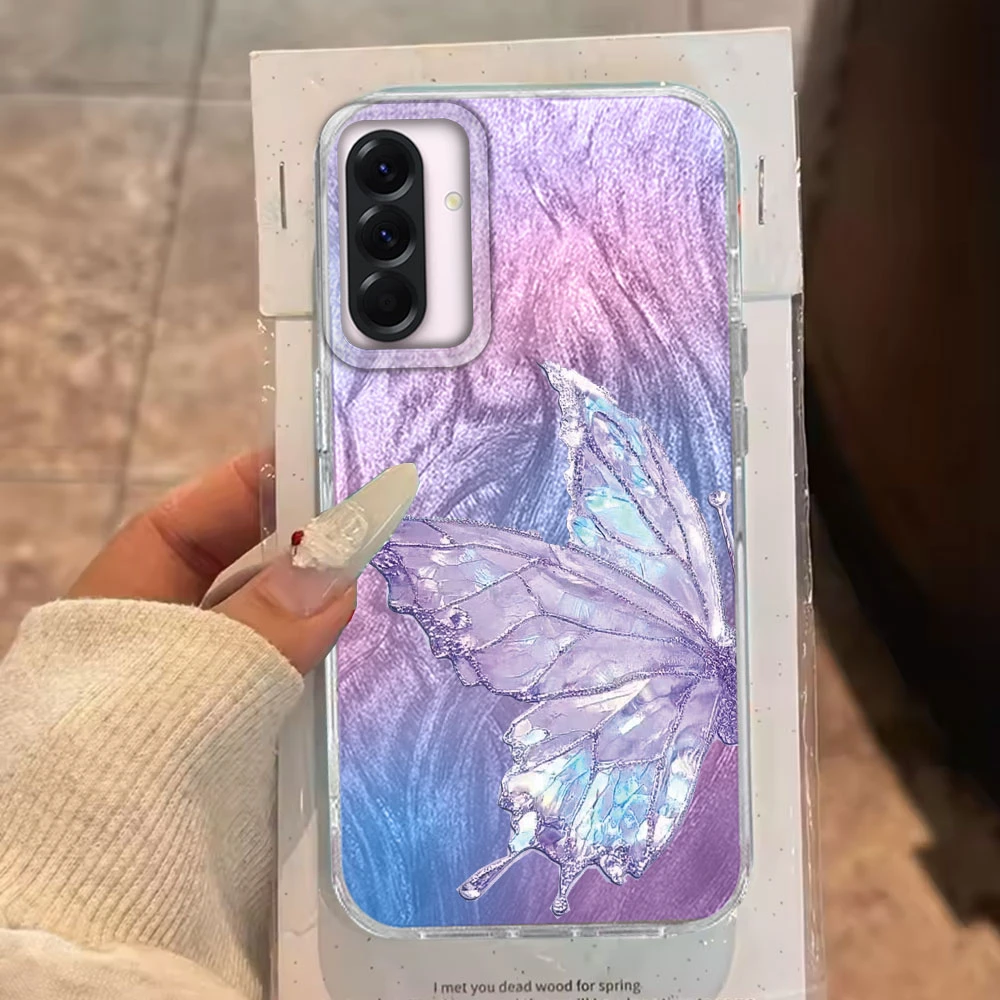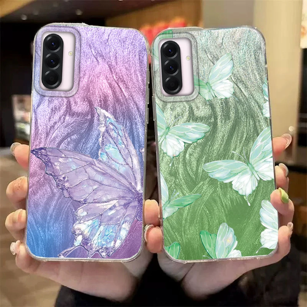 Comprar Fundas de teléfono con mariposa morada para Samsung Galaxy A56 A36 A26 A16 A55 A15 A25 A35 S25 Schmetterlinge, Funda de silicona para parejas