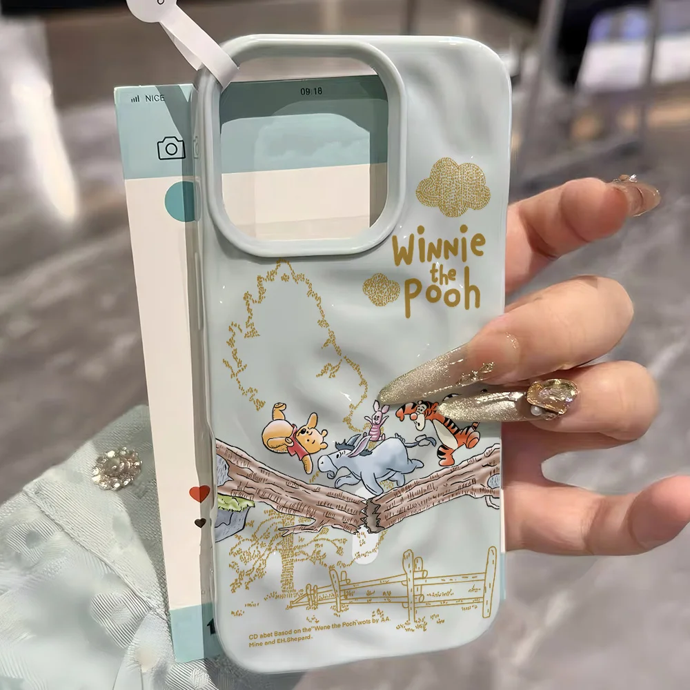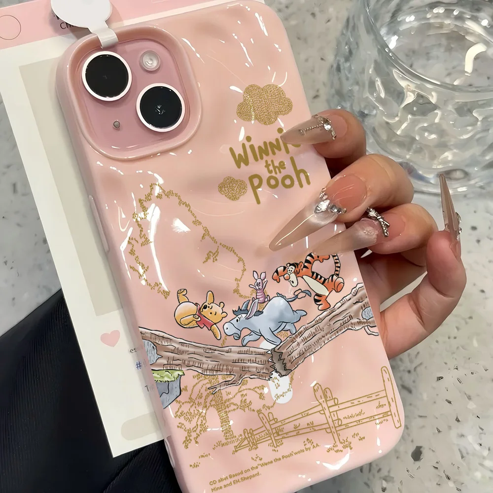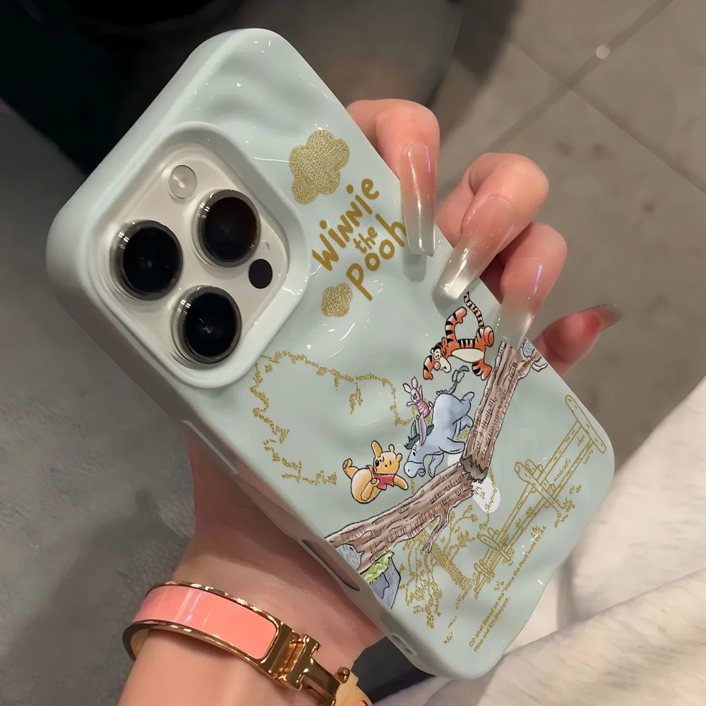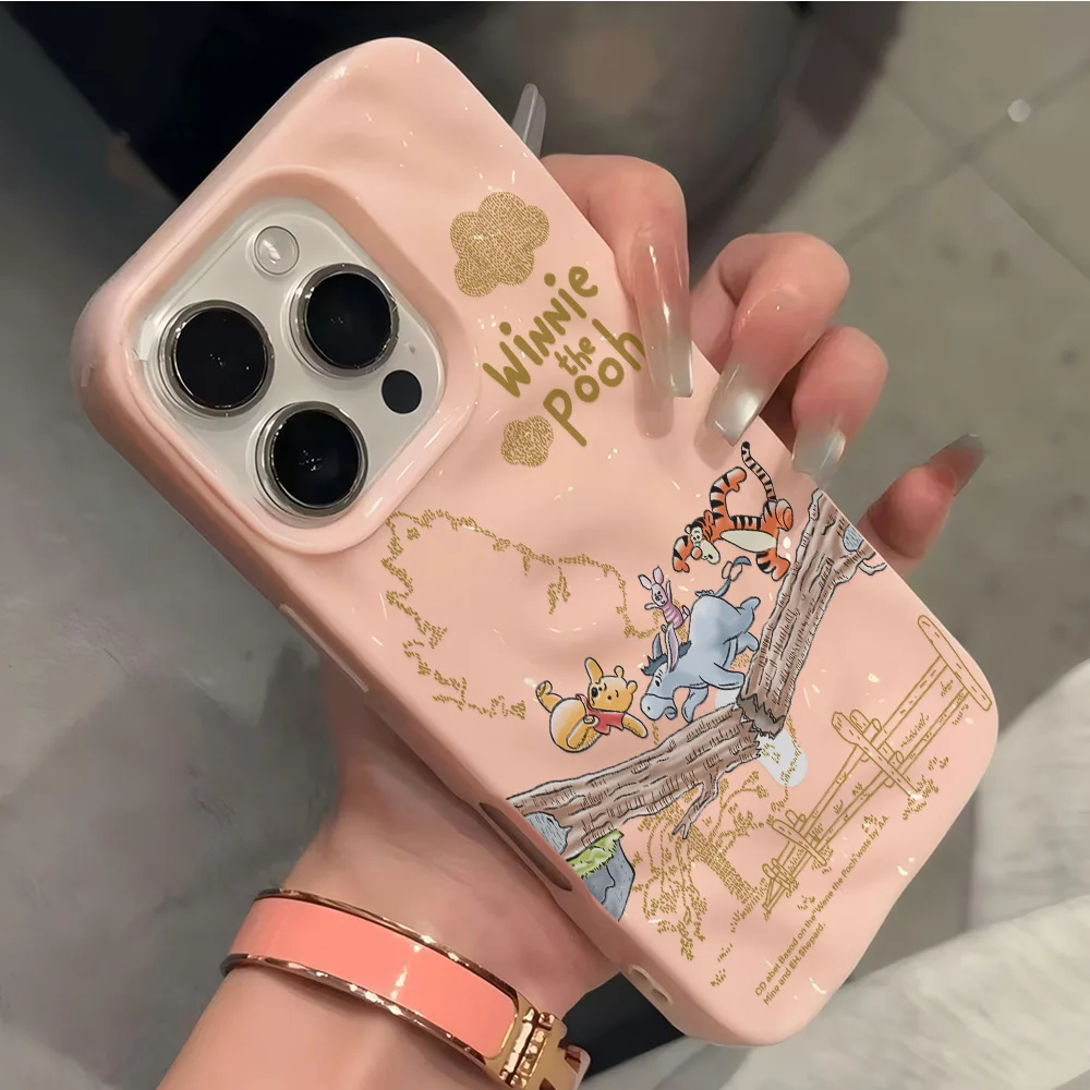 Fundas de teléfono de meteorito arrugado Irregular 3D de Winnie The Poohs de dibujos animados para IPhone 17 16 15 14 Plus 13 12 11 Air Pro Max suave y brillante