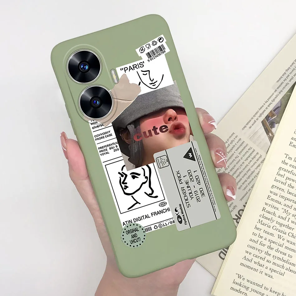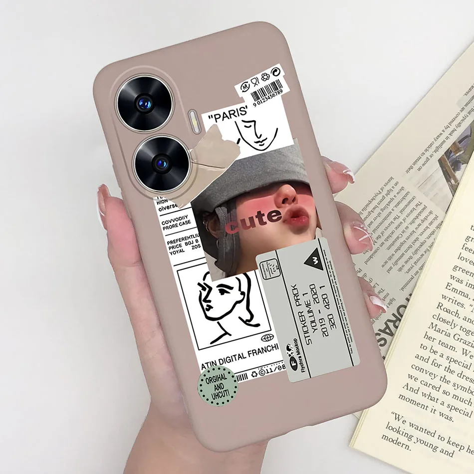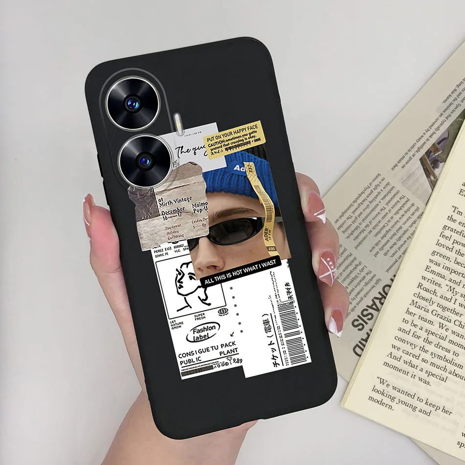 Para Oppo C55 4G fundas de teléfono Etiqueta de moda bonita funda protectora mate de silicona para RealmeC55 1 C 55 RealmeC 55 Coque