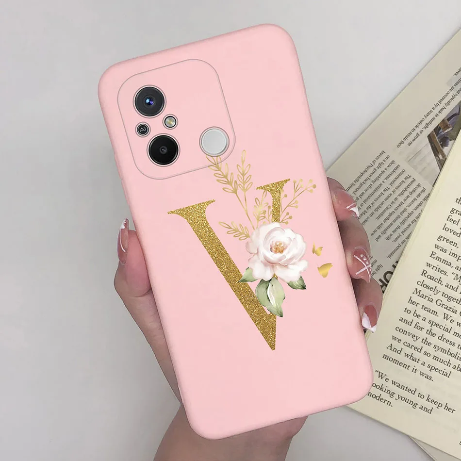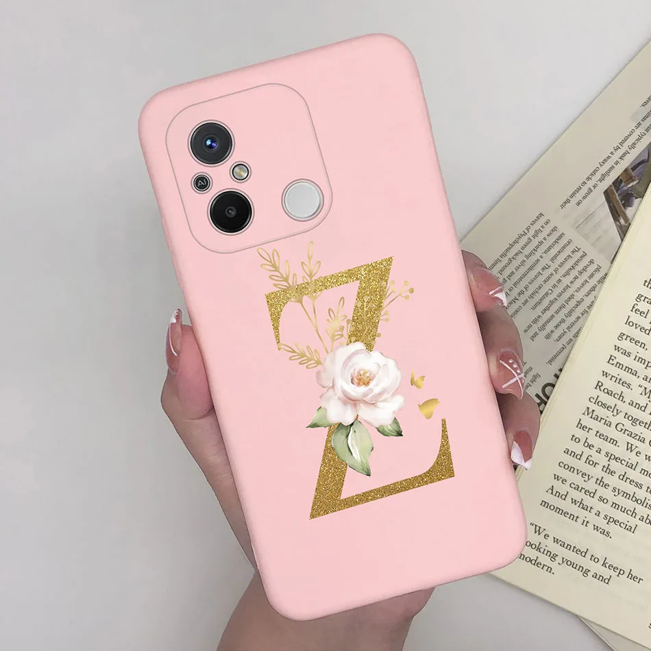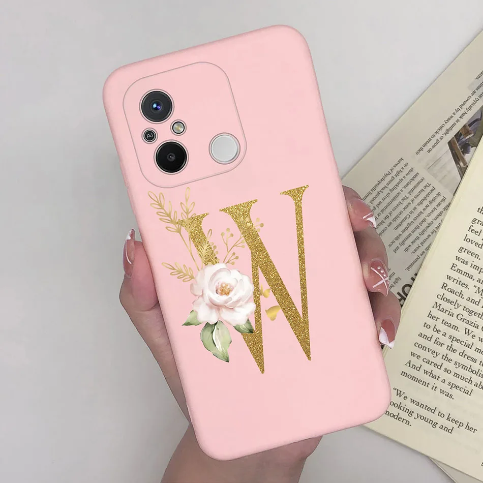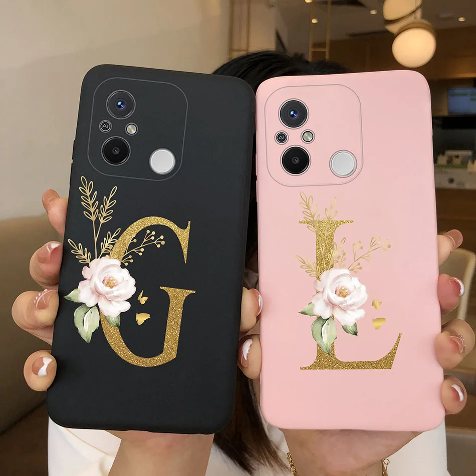 Para Redmi 12C 11A Xiaomi Poco C55 fundas de teléfono letras de oro rosa silicona mate contraportada para Redmi12C Redmi11A PocoC55 Coques