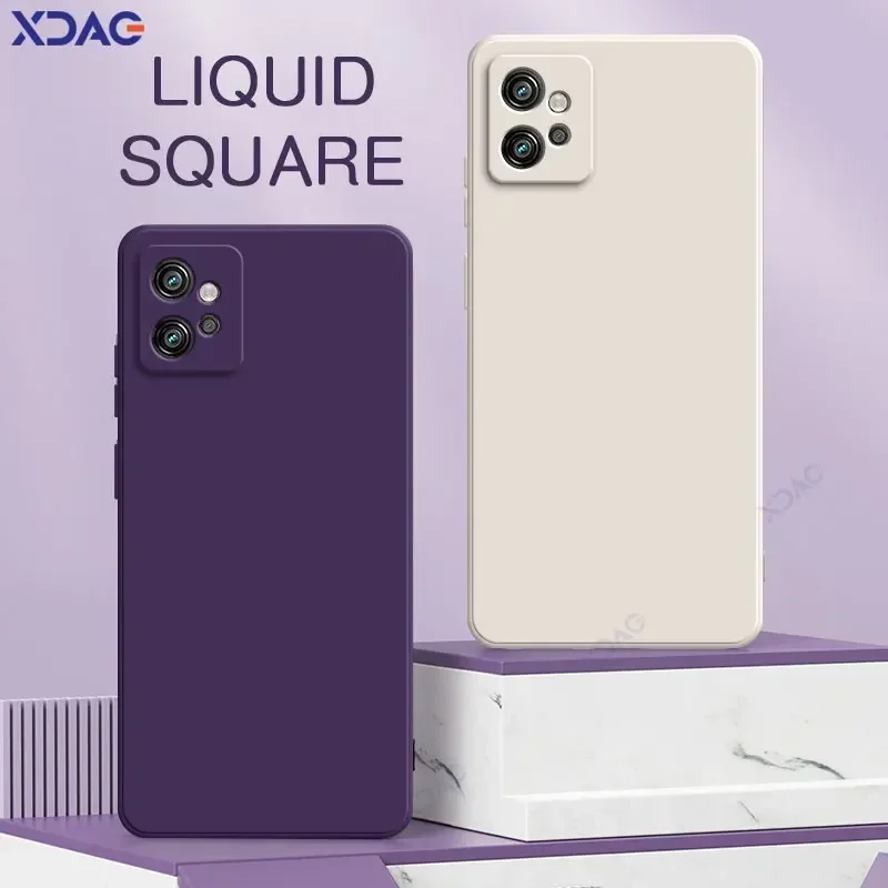 Comprar Fundas de teléfono de silicona líquida cuadradas originales para Motorola Moto G32 360 fundas protectoras traseras suaves MotoG32 armadura a prueba de golpes Coque