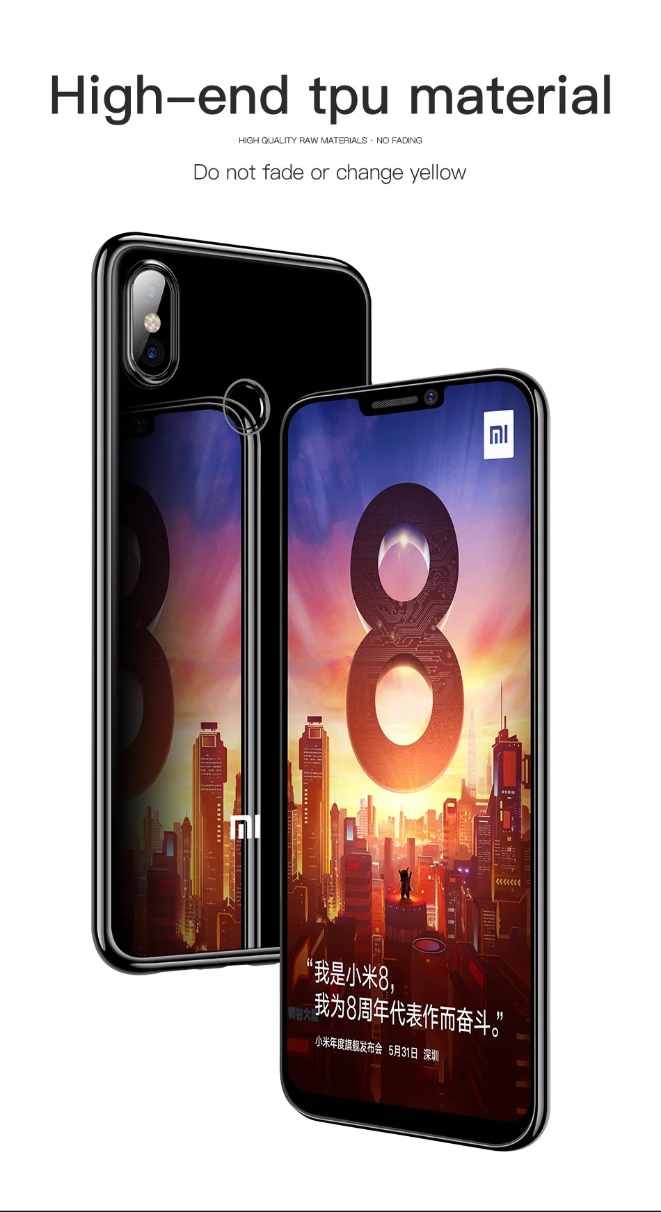 Selling Points · 100% Brand New.· High Quality A+ Friendly TPU Silicone material.· Perfectly Match for Xiaomi Mi 8 / Mi 8 SE / Mi 8 Lite shape.· Unique design allows easy access to all buttons, controls and ports, etc.· Protect your cellphone from Fingerprints, Scratches, Dusts, Collisions and Abrasion.· Express yourself by personalising your phone and making it stand out.· Ultrathin, Compact and Fashion Cute.· Easy to Assemble and Remove.