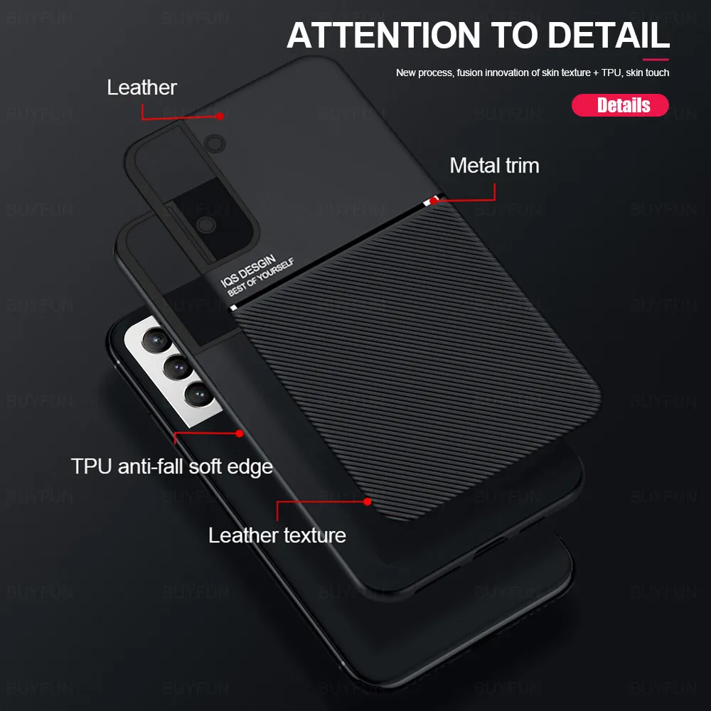 leather texture phone covers for samsung galaxy s21 fe s22 s 22 21 ultra s22+ case car magnetic holder silicone shockproof coque