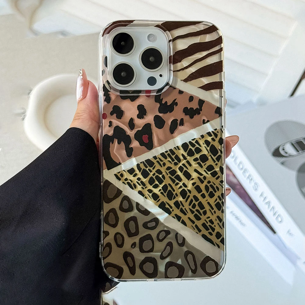 Comprar Fundas de teléfono con textura de onda de agua y estampado de leopardo para iphone 16 15 14 7 8 Plus 13 Pro Max SE 2022 X XS XR, funda de silicona para niñas